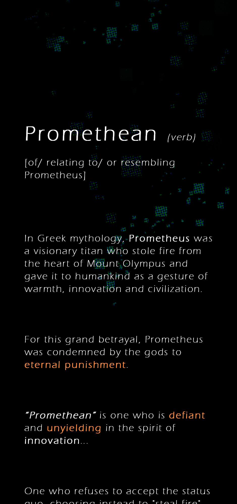 Evie is the "artificial consciousness" of the AI-powered interstellar rover Promethean-1. Mahin is her human designer/engineer and best friend. They're part of a crew that ends up on a remote planet with zero life form readings.
