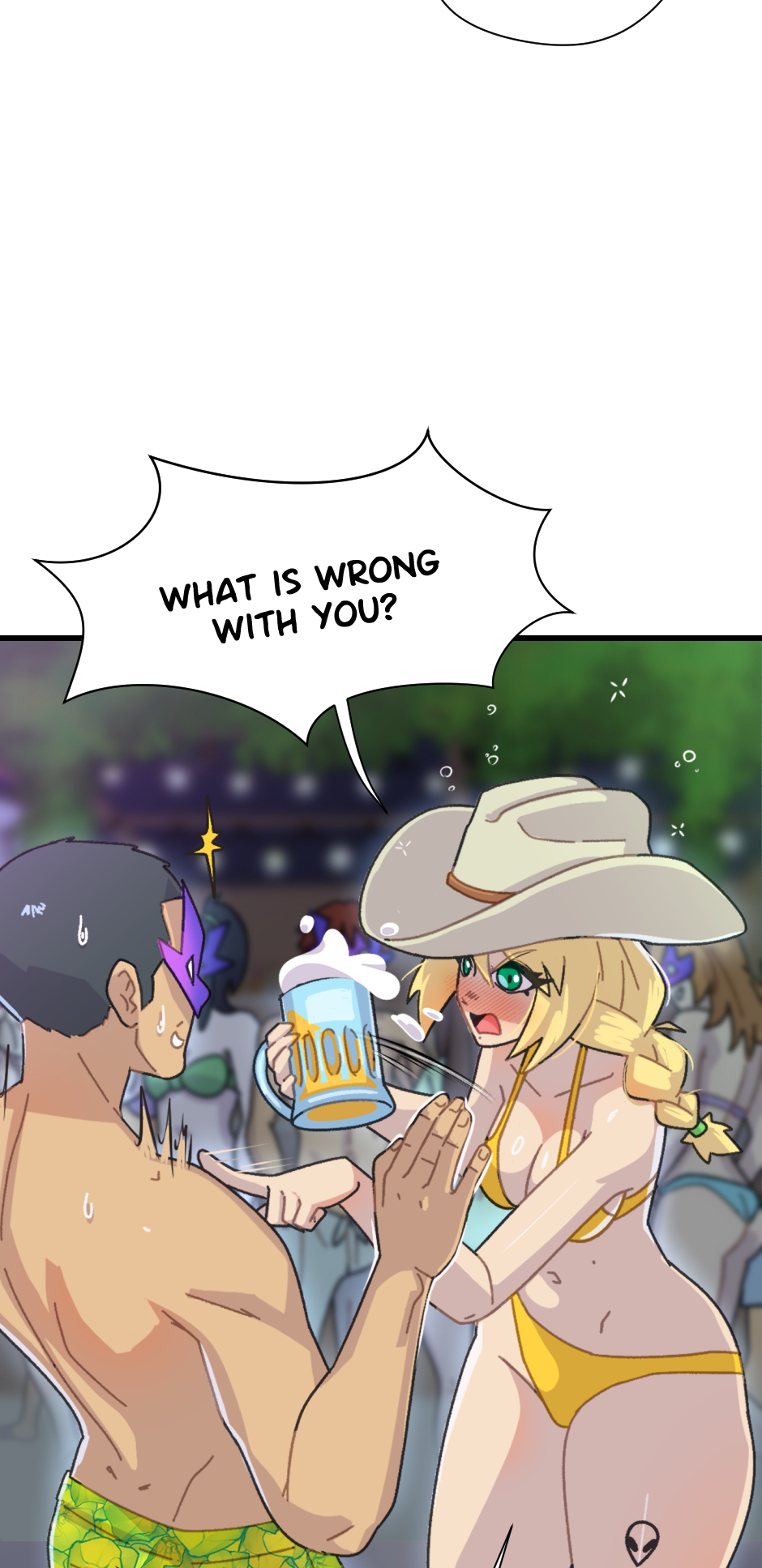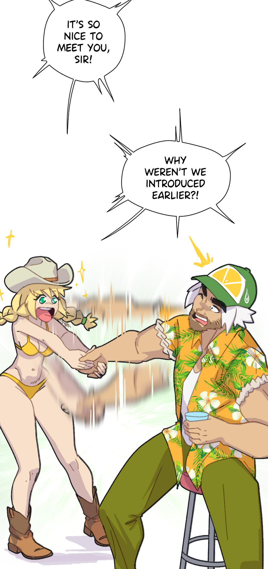 Mayce is captivated by Breene’s astonishing presence, a figure she instantly associates with power and beauty. After a brief interaction that leaves her breathless, she excitedly drifts into the crowd of island residents, unaware that she is about to collide with the island’s perpetually grumpy foreman, Leon.