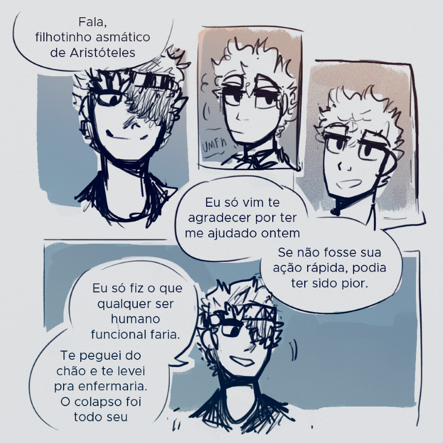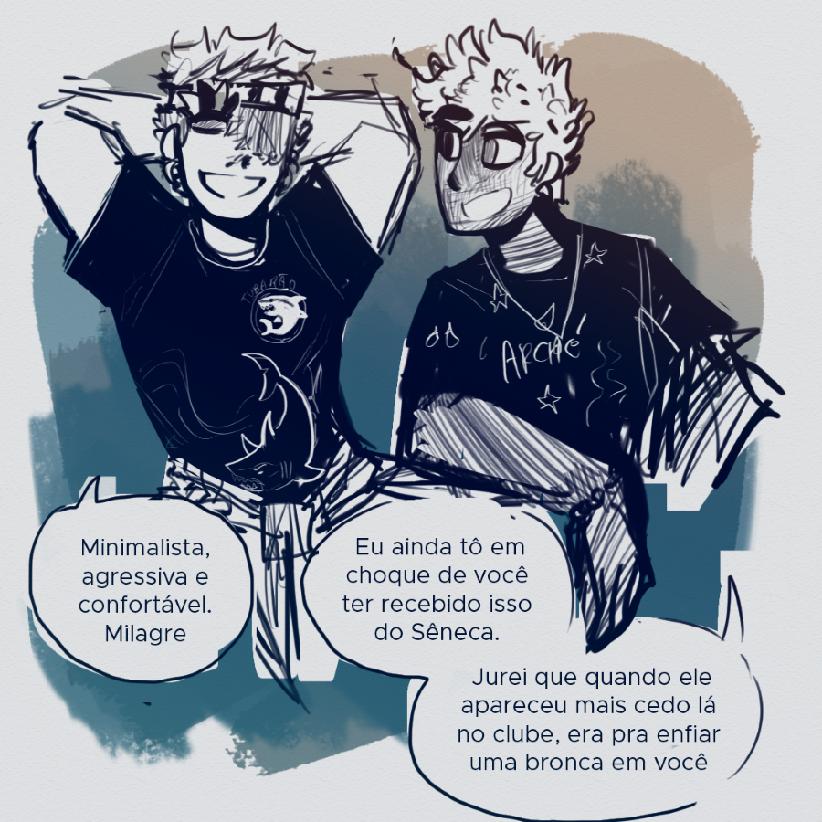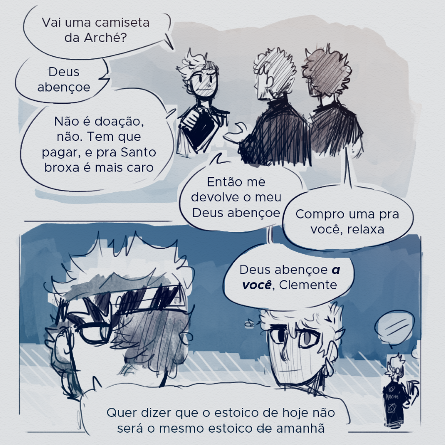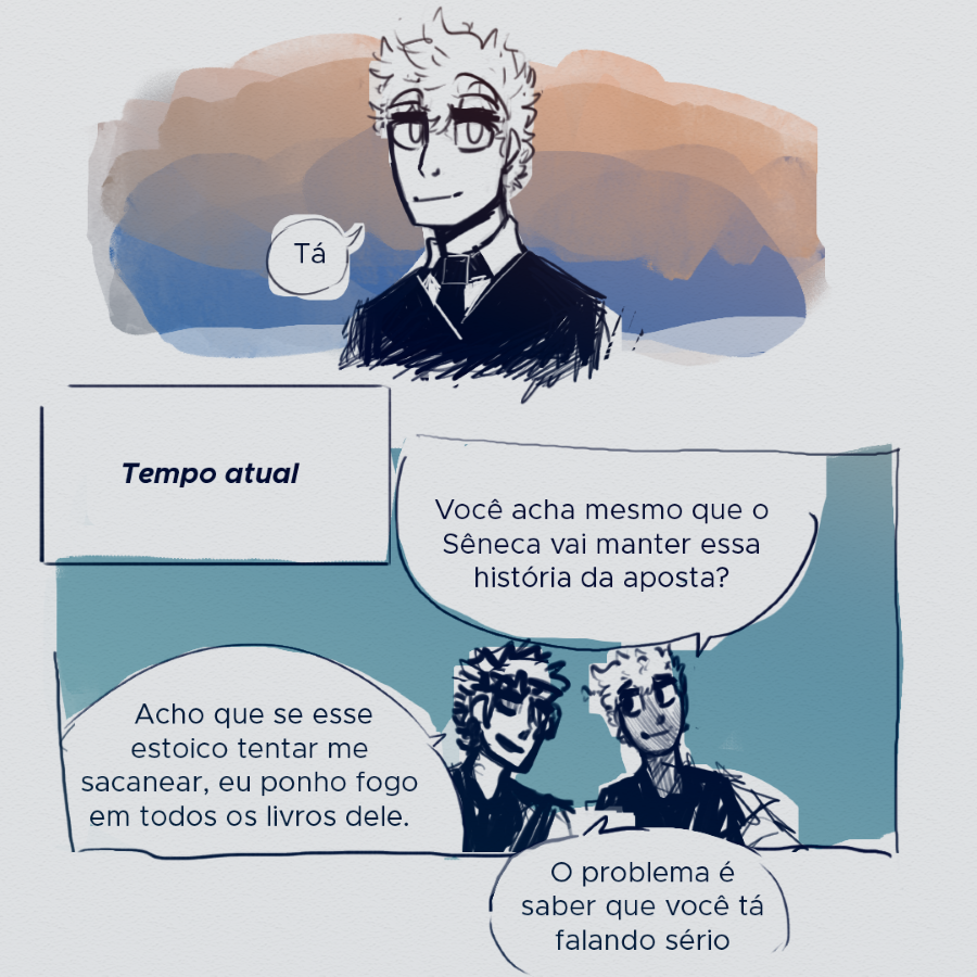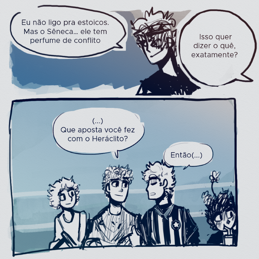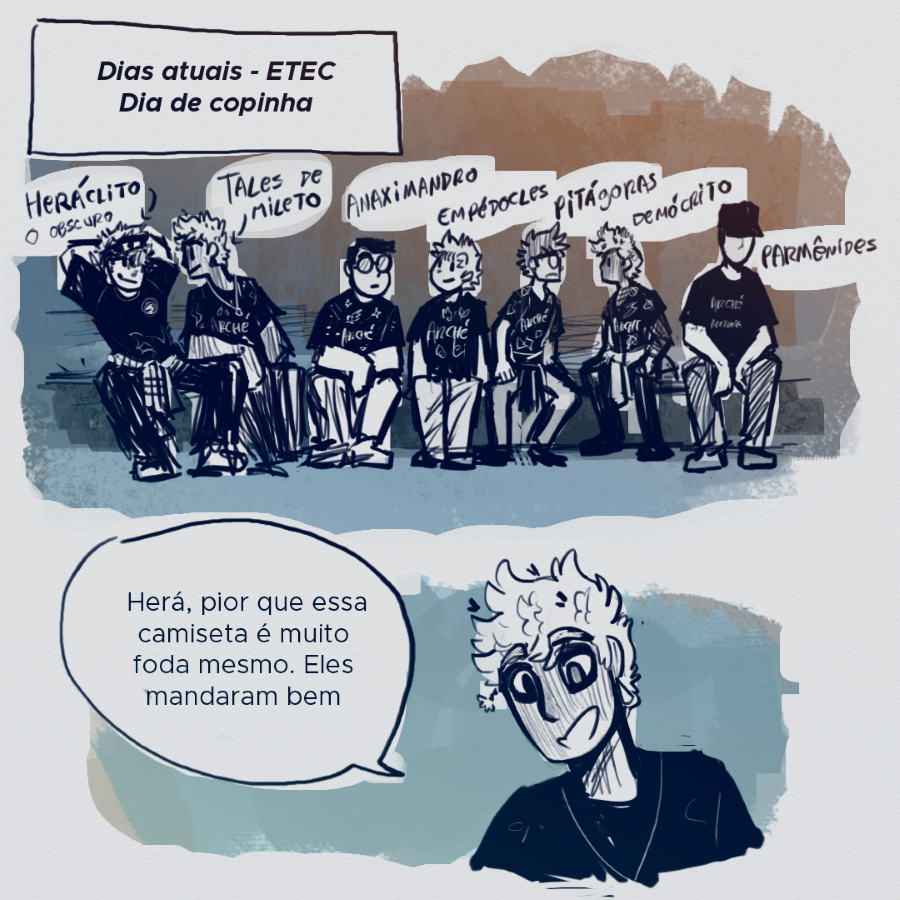 Que capítulo LINDO. Eu tinha esquecido o quanto eu adoro os pré-socráticos daqui, sem contas que Tive que passar uns minutos explicando o porquê eu fiquei todo sorridente pro meu irmãozinho quando vi que o nome da banda era arché.