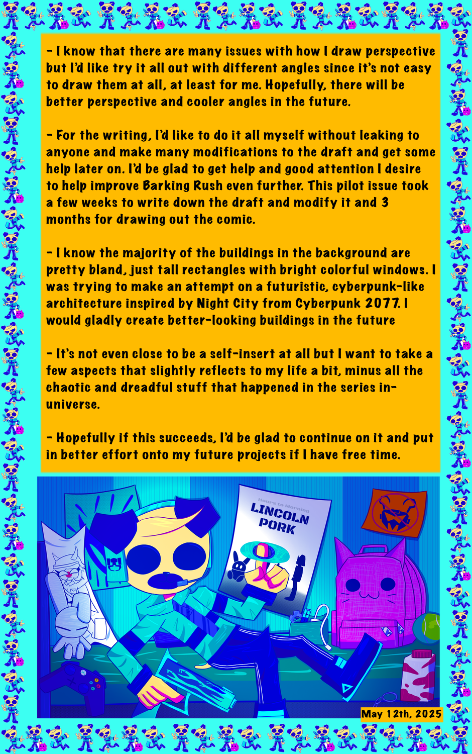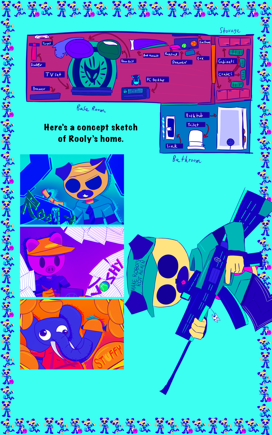 A seemingly edgy pug was equipped with a super cybernetic implant modification that allows him to run as fast as the speed of light through a cyberpunk dystopia filled with vicious robots led by a sadistic scientist who wants to torture Rooly. Engaging in combat via constantly slaughtering robots with the help of old and new allies, Rooly also has to face inner-conflicts that reflect on his trauma as well, despite trying to stay as cool as possible.