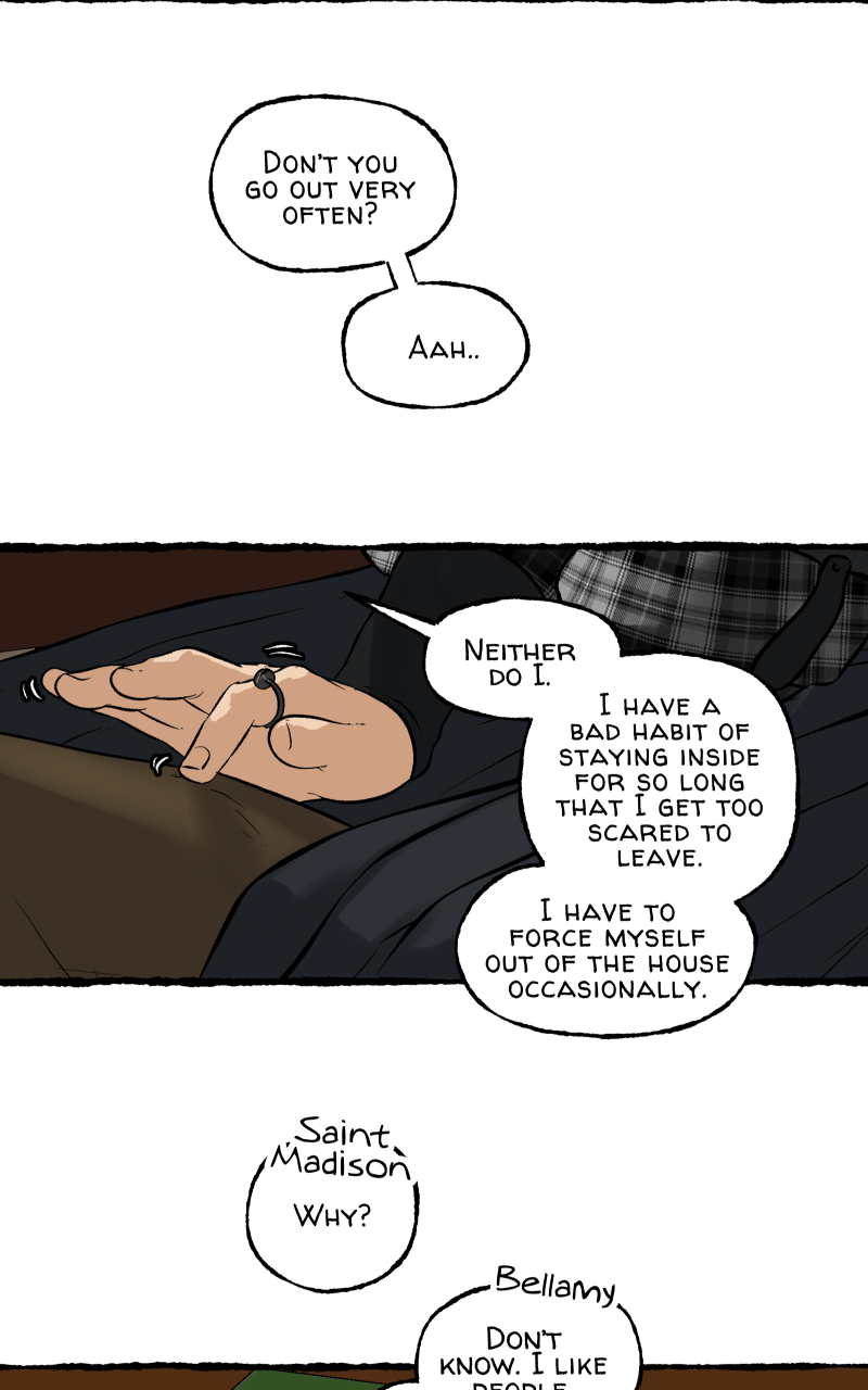 Depictions of mental health conditions, drugs and alcohol. Explicit scenes are on Patreon.
