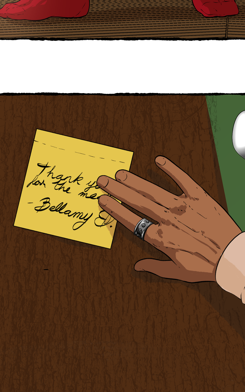 Losing his grip on reality, Bellamy is drawn to the quiet presence of Saint Madison—the Grim Reaper living across the corridor—reminding him that no matter what happens at Draisey Manor, there’s no place like home.