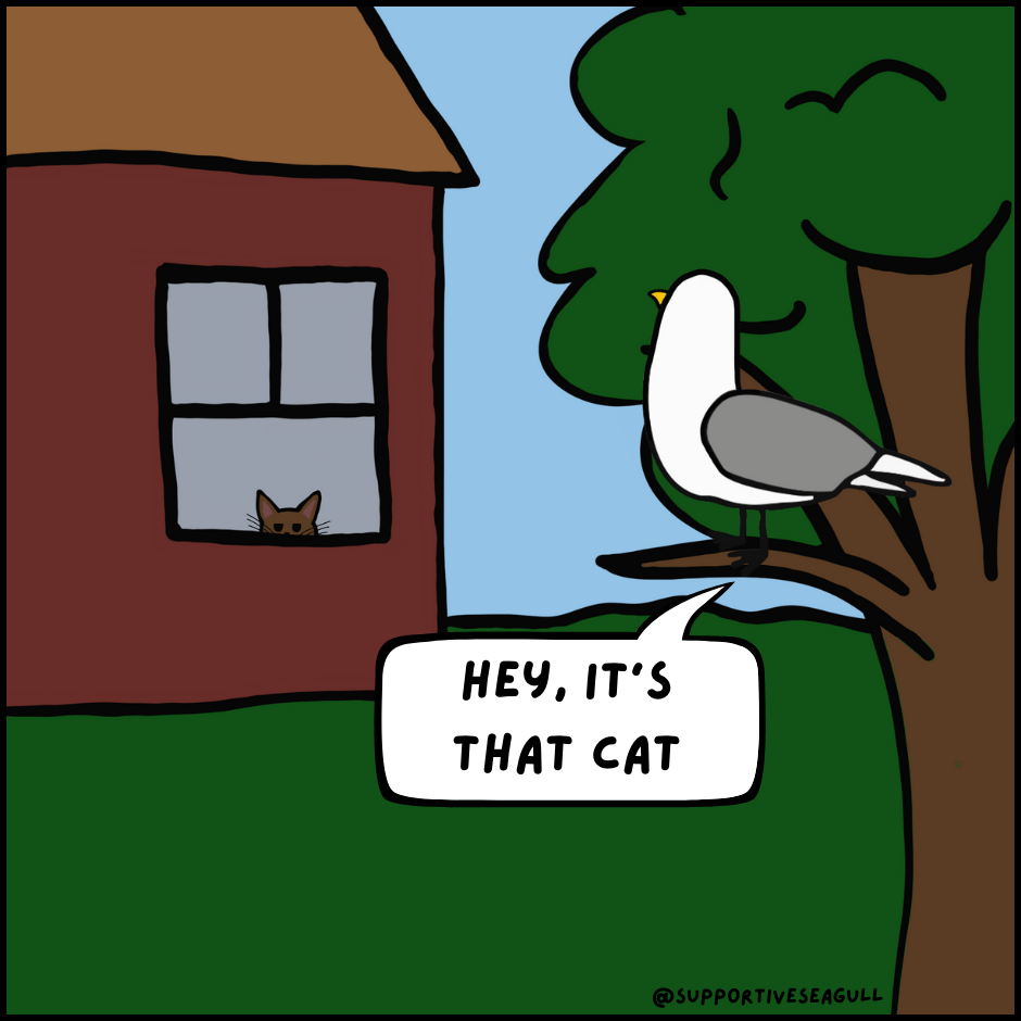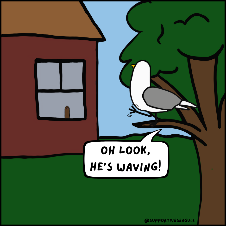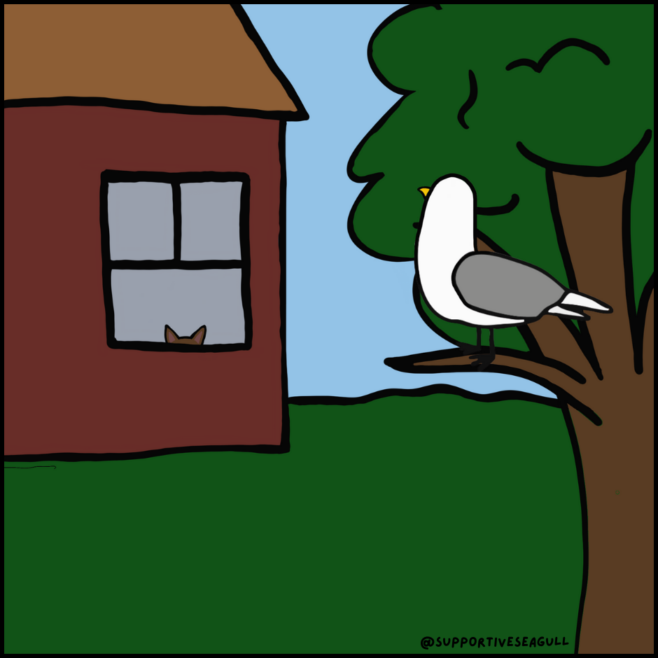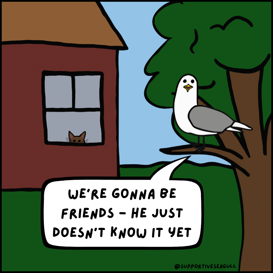 Supportive Seagull is a comic about a silly little seagull who is aggressively supportive, doesn’t sugarcoat reality, and goes on little adventures to make new friends. Sometimes motivation sounds less like an inspirational TikTok and more like a seagull screaming support in your face.