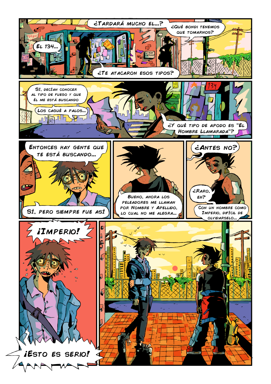 Página 15 Esperando el bondi. . Me gustan bastante los fondos que hice para esta página