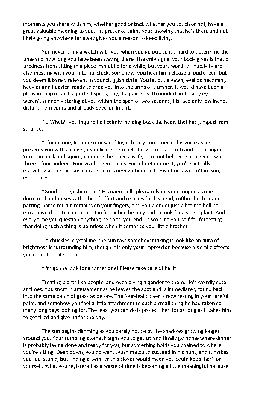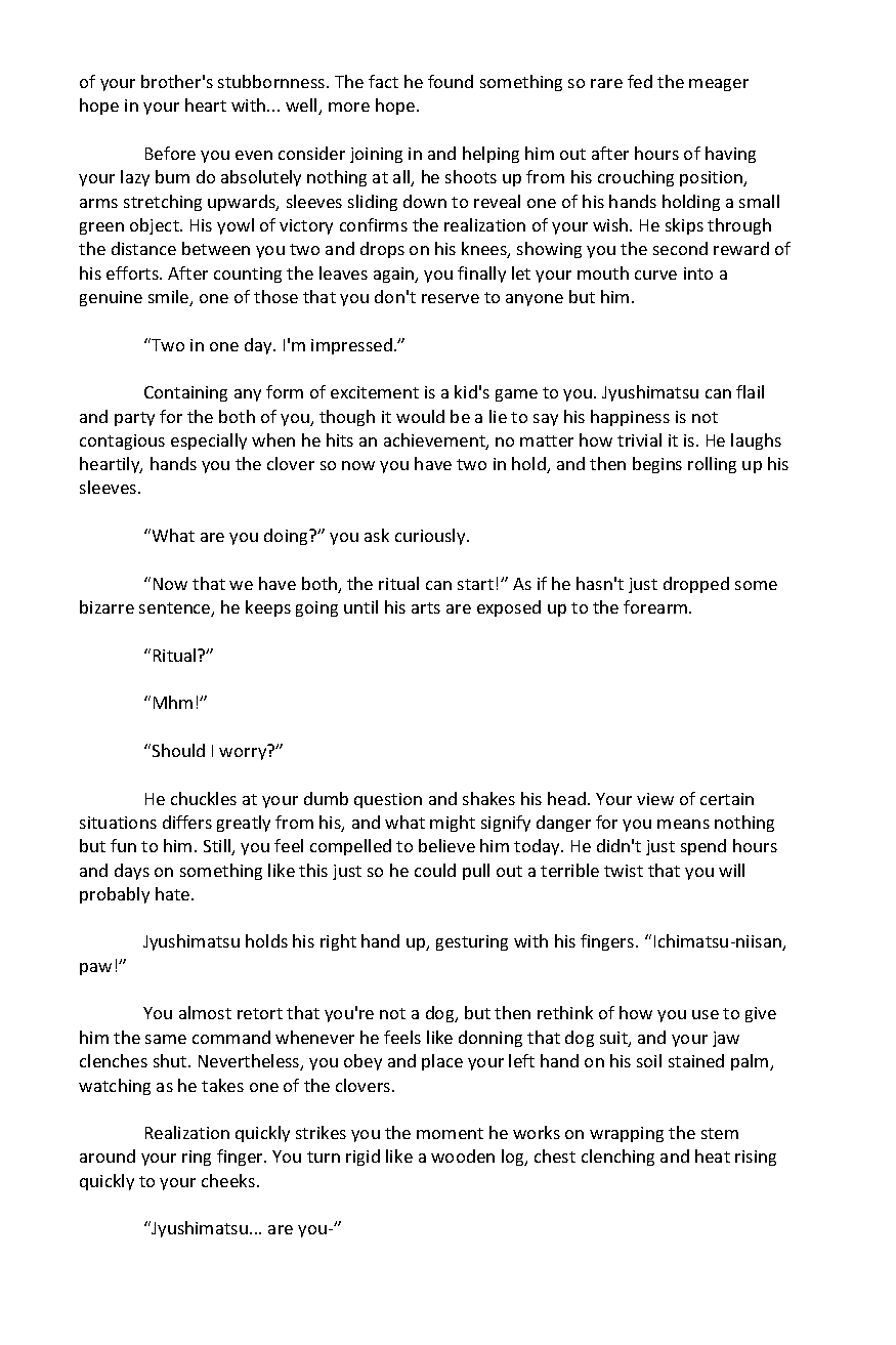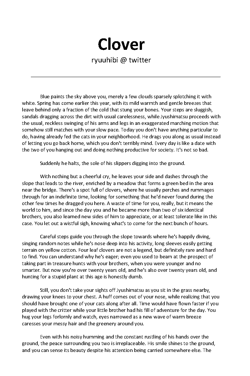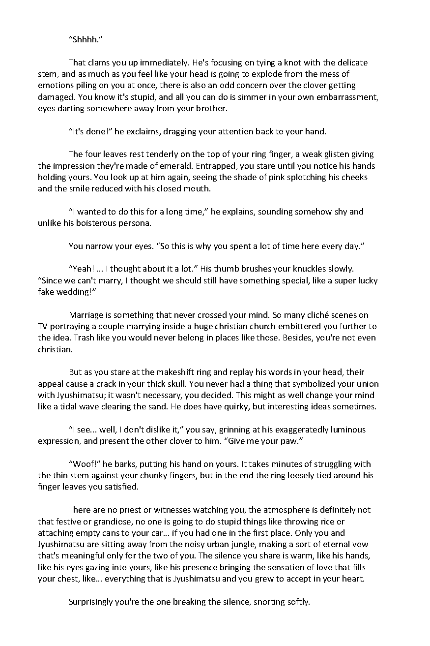 Suuji Sundae is a fanzine comprised of the work of over 70 different artists and authors, to create a book filled with artwork of the Osomatsu-san pairing, Ichimatsu x Jyushimatsu. To download both the sweet and spicy sides of the zine, head on over here: https://k1ttensocks.itch.io/suuji-sundae