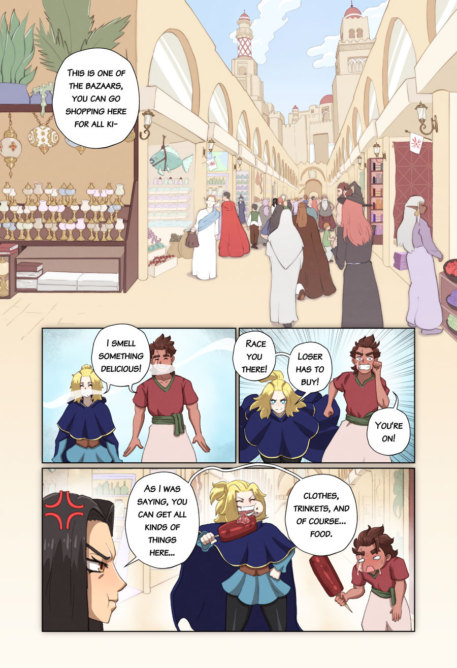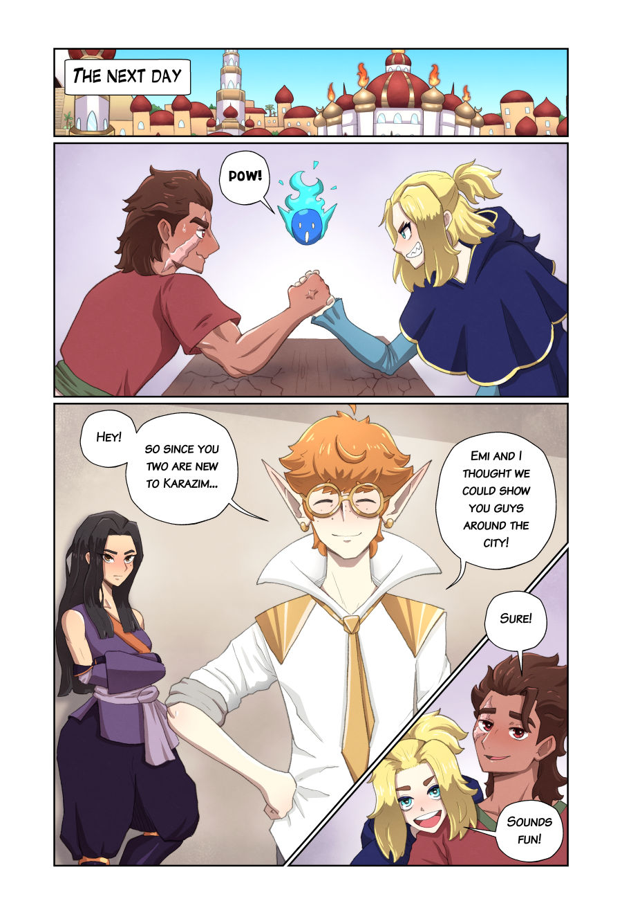 Raiyan, a young miner, enjoys a simple and peaceful life alongside his parents. However, once a colonial empire attacks his homeland, he has no choice but to flee across the sea. There Raiyan finds himself in the mystical city of Karazim, where magic and learning reign supreme. Updates every other week. Read pages as they're released at https://karazim-comic.com/