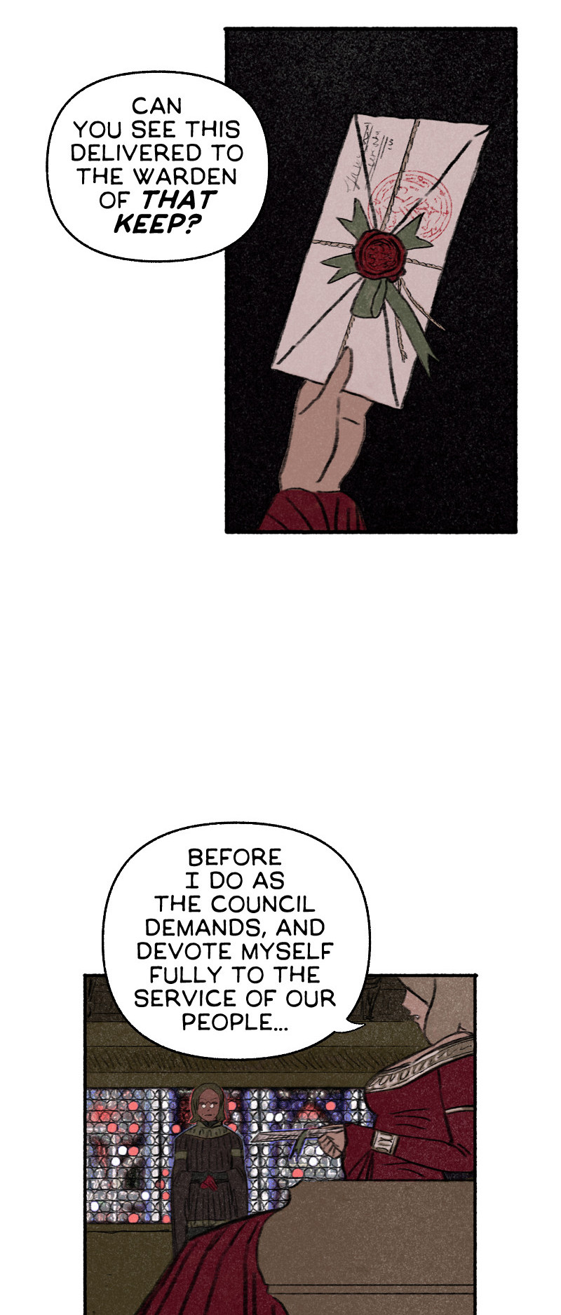 This comic is a slowburn m/m romance, fantasy with adventure elements.