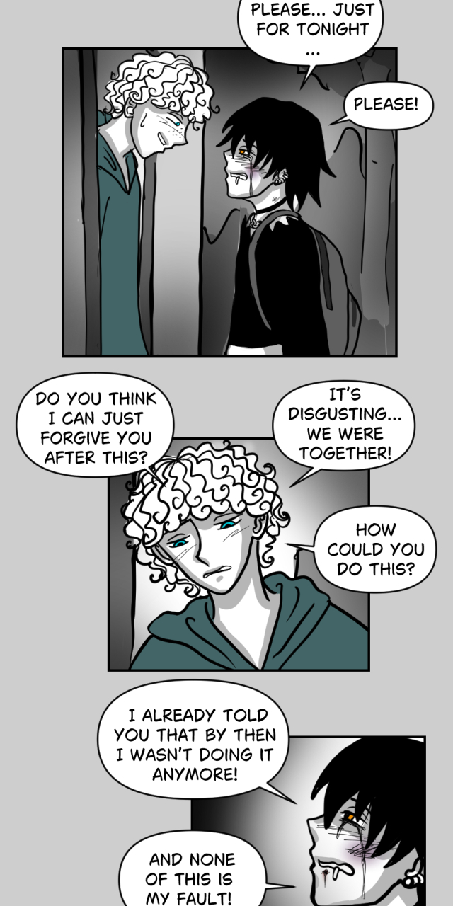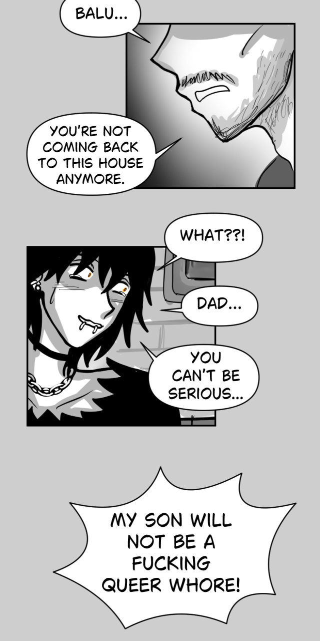 The bigger question WHAT THE FUCK IS WRONG WITH HIS FAMILY!!! and his boyfriend not even hearing him out I get it your angry or feeling disgusted but in front of you is the person you liked crying with no place to go the least you can do is hear him out !!!(¬_¬").ᐟ