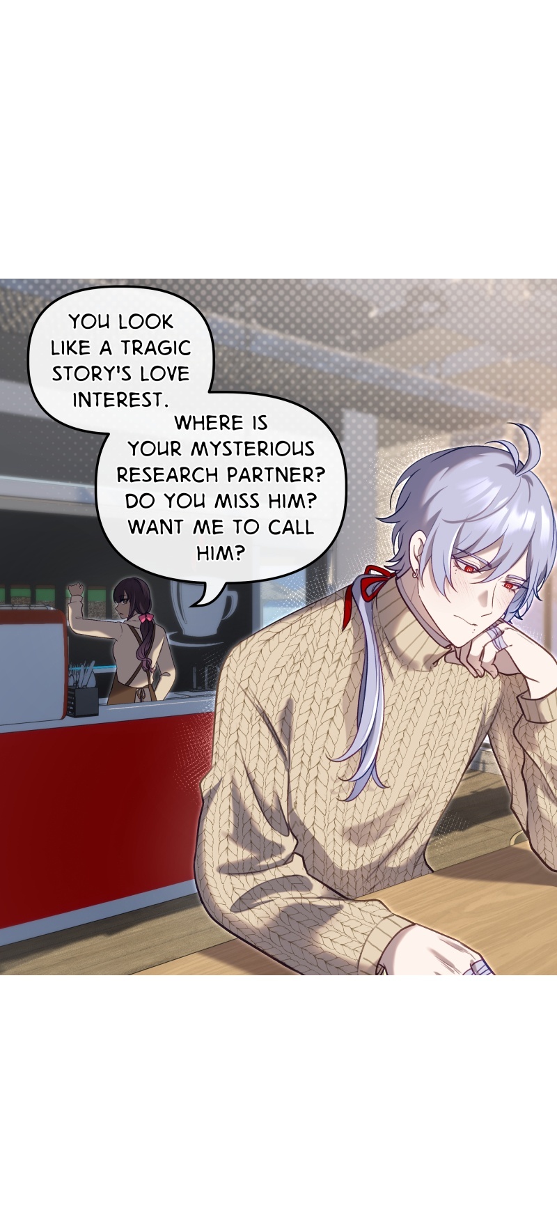 Kisa likes writing, but his “research questions” tend to scare people off… except for Ying, the reserved regular who provides unusually precise answers.