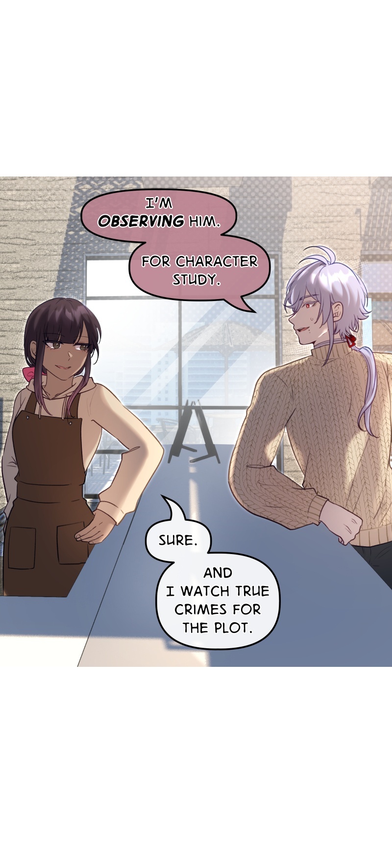 A hobbyist novelist with unhinged curiosity and an assassin with no social skills walk into a café together.