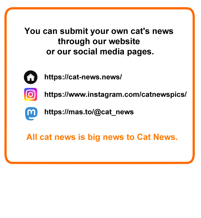 We want to hear about the adventures and misadventures of your feline friends! Let us know on our contact page or on one of our social media pages. All cat news is big news to Cat New. And you can find more stories on Cat News. Homepage: https://www.cat-news.news/ Instagram: https://www.instagram.com/catnewspics/ Mastodon: https://mas.to/@cat_news
