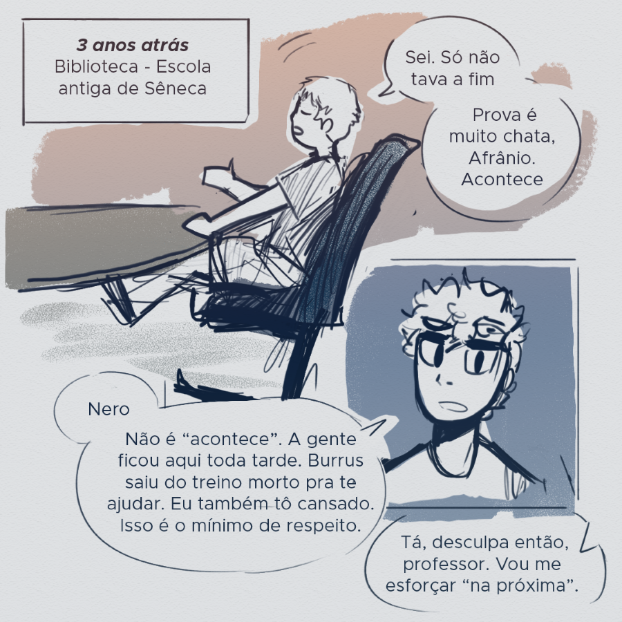 Lucius Annaeus Sêneca, um estoico diplomático e paciente, começa o ano letivo sendo abençoado com a presença de um caos com ostracismo: Albert Camus, o persona non grata da escola. Sêneca, você só queria paz, não é?