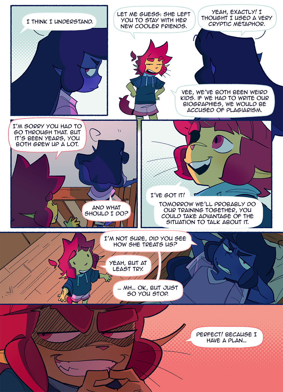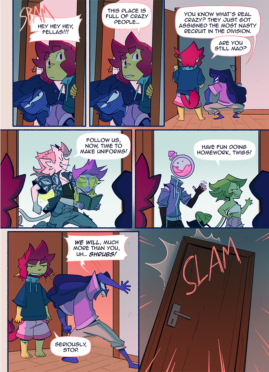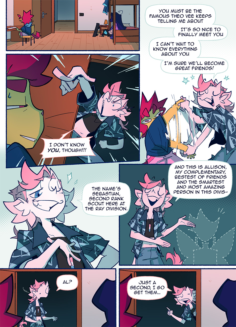 In a world where pride flags are worn as capes to fight for justice, Theo and Vee are two young novices ready to start their training to become professional sentinels. But every rookie needs a mentor, and who better to show them the ropes than the most catastrophically dysfunctional sentinels in the entire city? BE GAY, FIGHT CRIME!!!