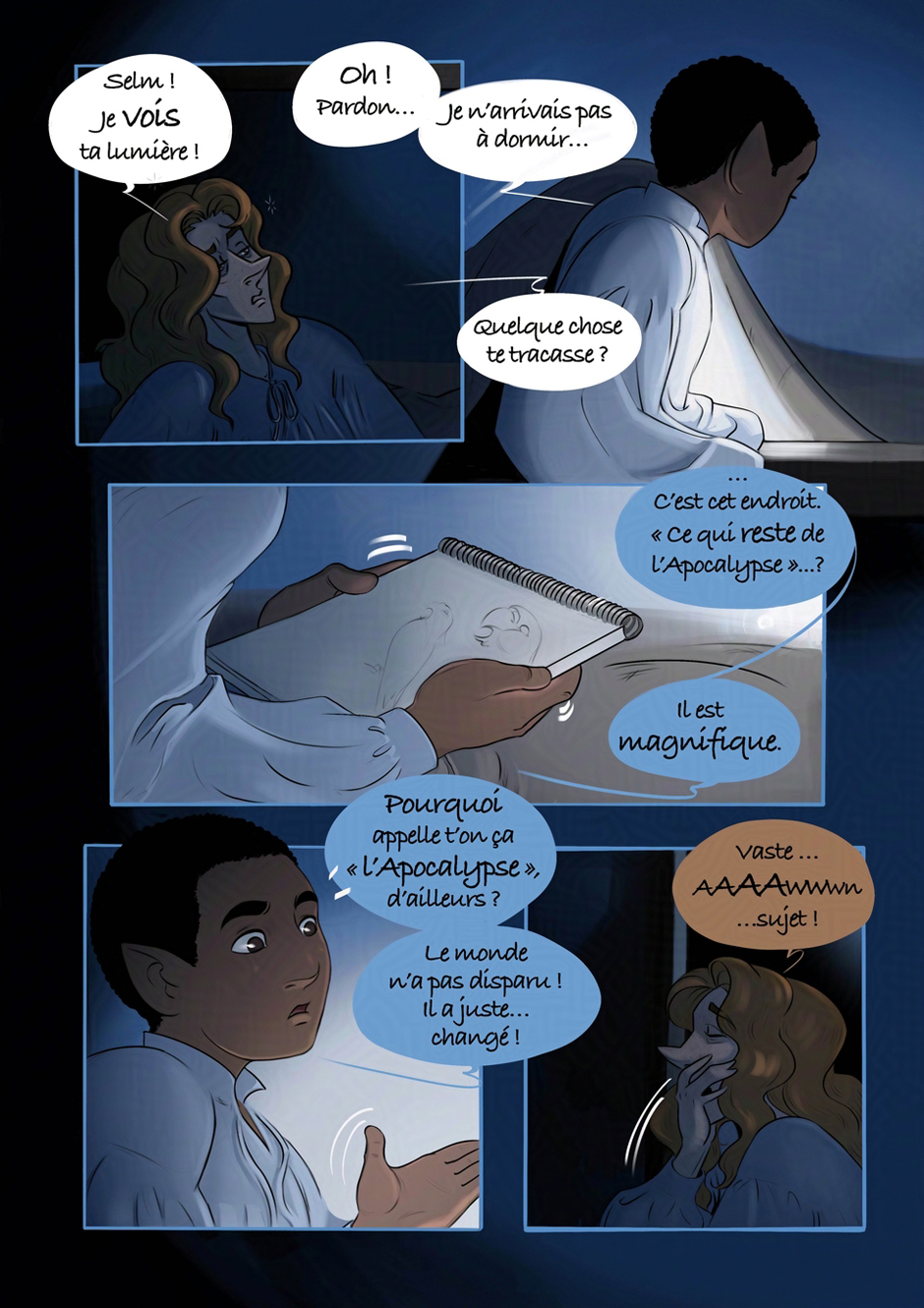 « Le Miroir aux Alouettes » est une histoire pour un public mature qui traite de sujets difficiles, voire sensibles. Le langage peut y être crû, des contenus sexuels ou graphiques modérés sont possibles et feront l’objet d’avertissement.