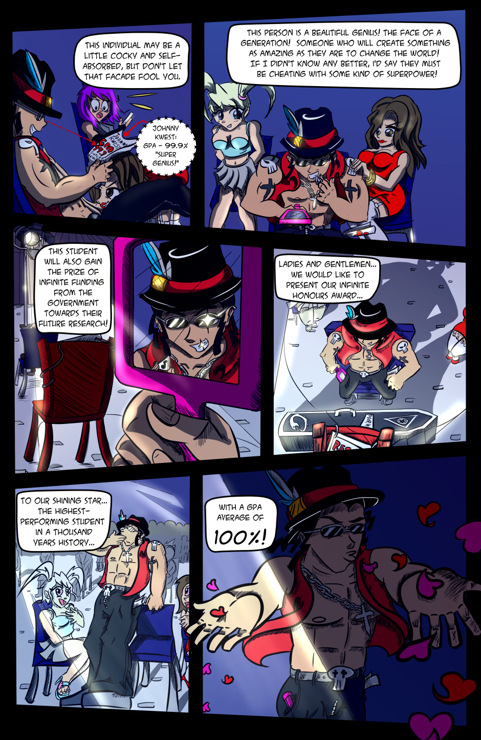 Come for her crazy match-ups against her strange foes, like a guitar-wielding necromancer, an overpowered justice-obsessed mantled swordsman, a man made of beer, a Canadian robot werewolf, and...well, just look at the banner. You'll get the idea.