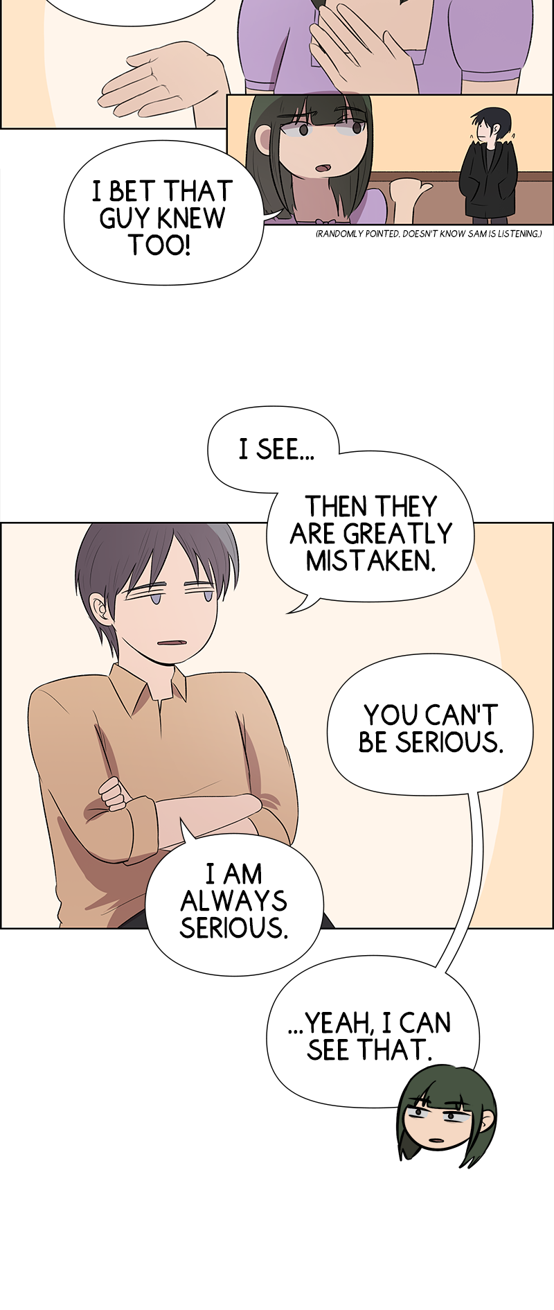 Sam isn’t the most confident guy around, but he’s a big fan of love stories. He’s perfectly happy watching from the sidelines, always believing that it just isn’t meant for someone like him. But then this guy forgets his wallet, and Sam ends up returning it. What seems like a small moment at first soon leads to another meeting, and another, and another. Sam’s quiet bystander life starts to feel like one of the romantic comedies he loves. Only this time, he might actually be the main character.