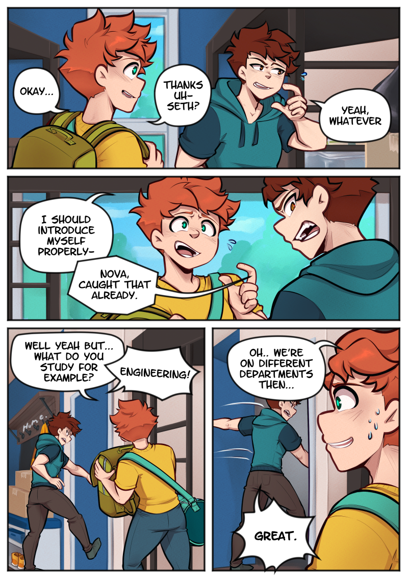After struggling to make friends all his life, Nova starts college with a new spark of optimism. His first chance of new friendship ends up giving him trouble when his roommate, Seth, can't sort out his own feelings. College life comes with a lot of changes, but the most unexpected is a little creature asking for Nova's help with its tasks related to monsters creeping around the campus.