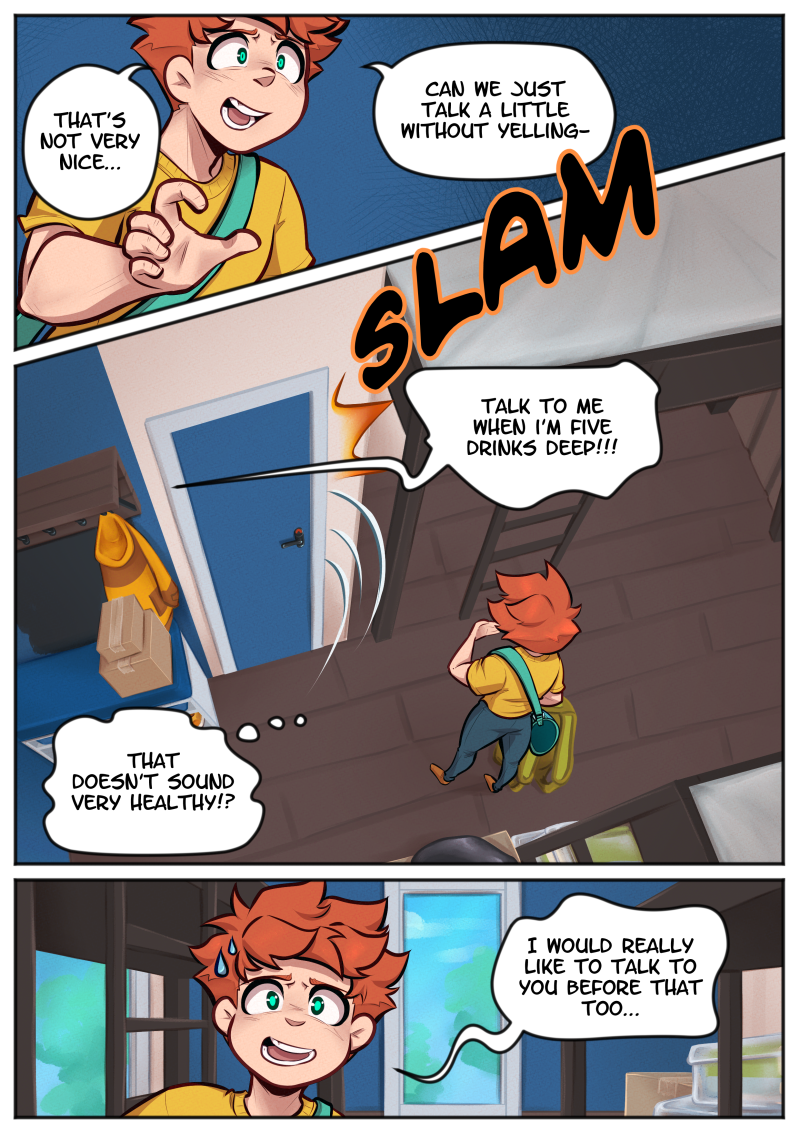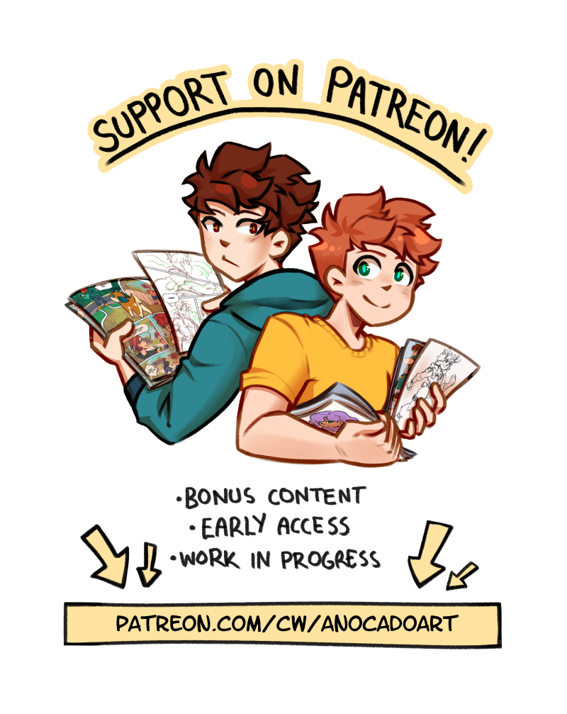 My current upload schedule is "at least once a month". You can help me secure more time to comic drawing by sharing the story or joining my Patreon :3