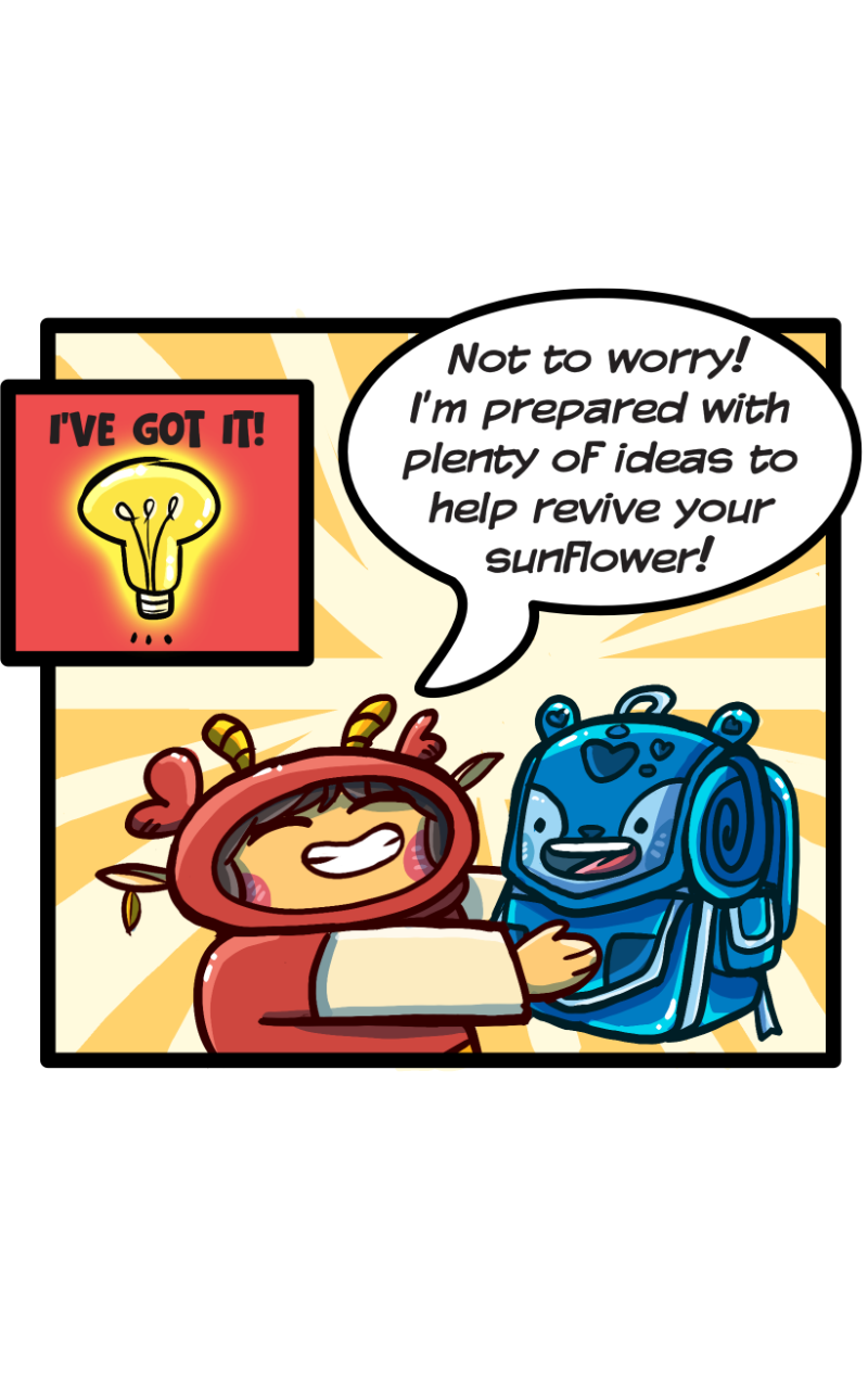 I think the sadness is starting to get to Taz. How can she turn the sunflower's frown upside down?
