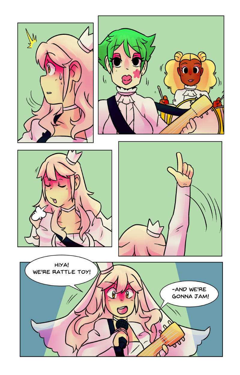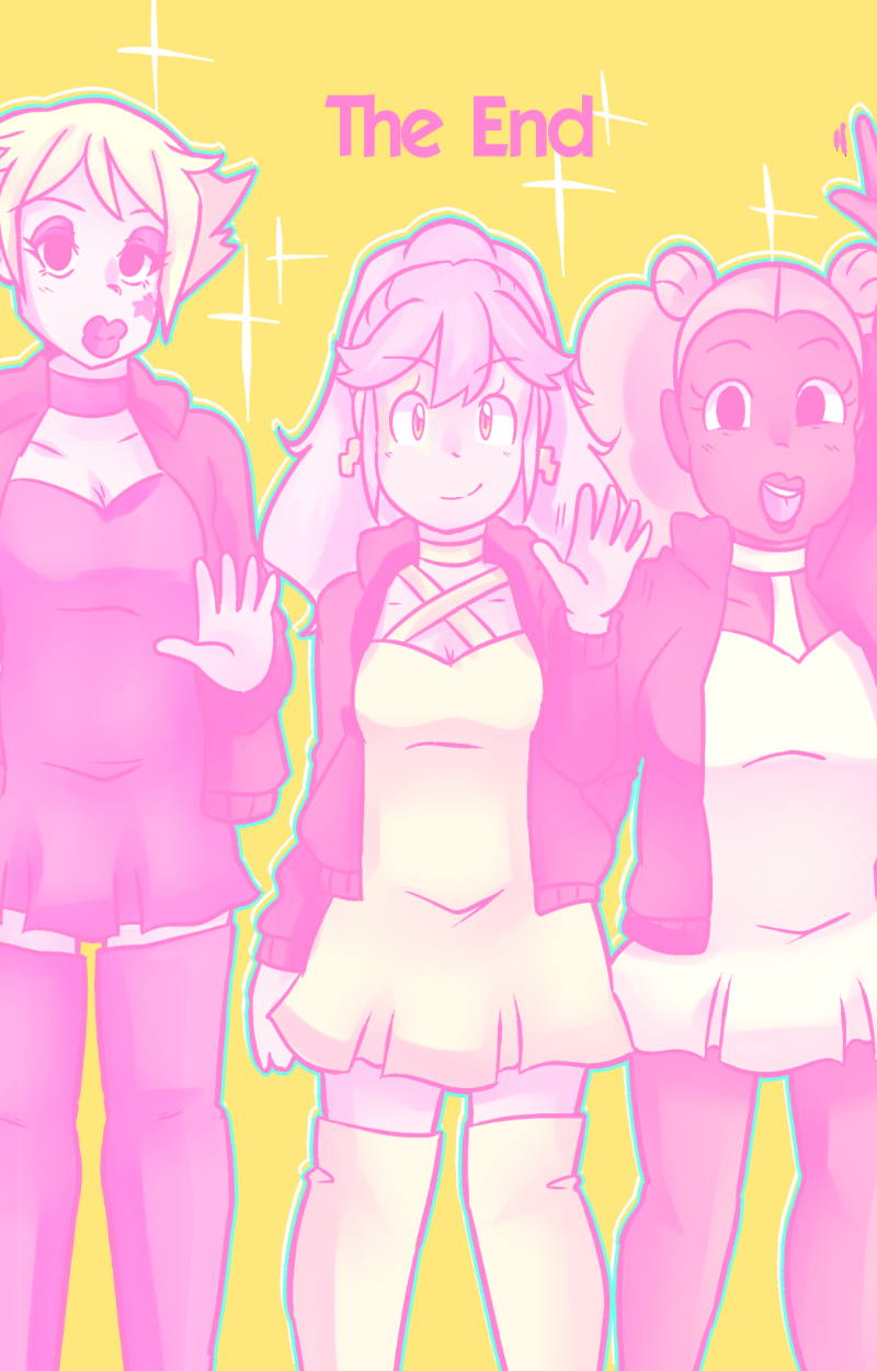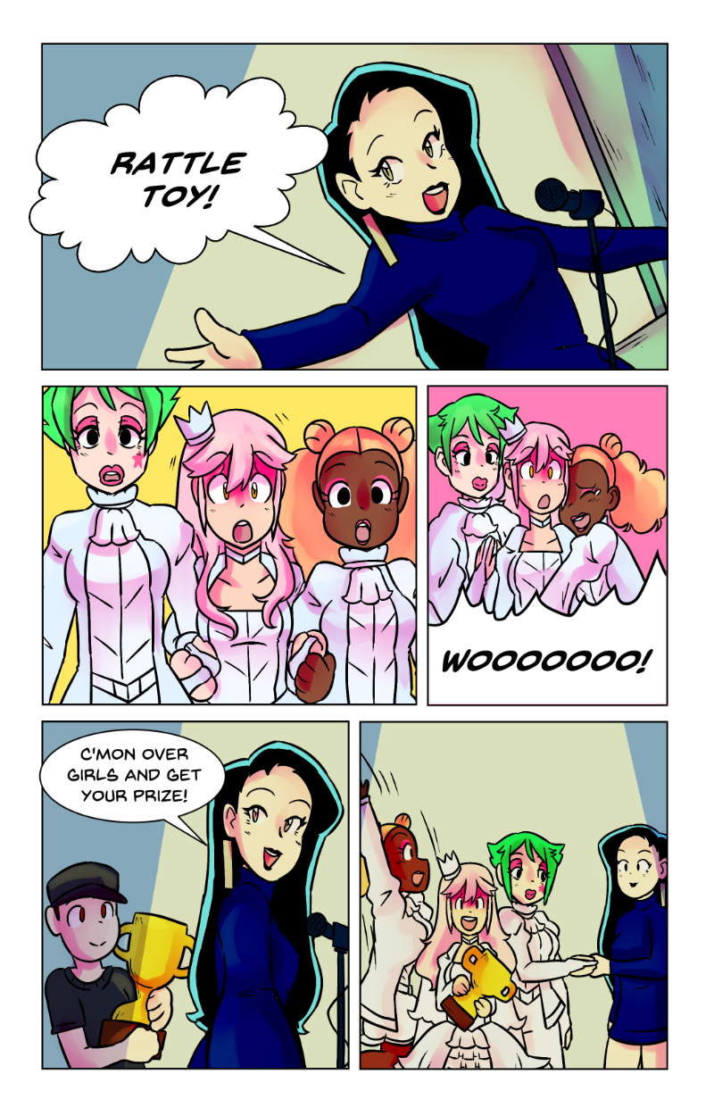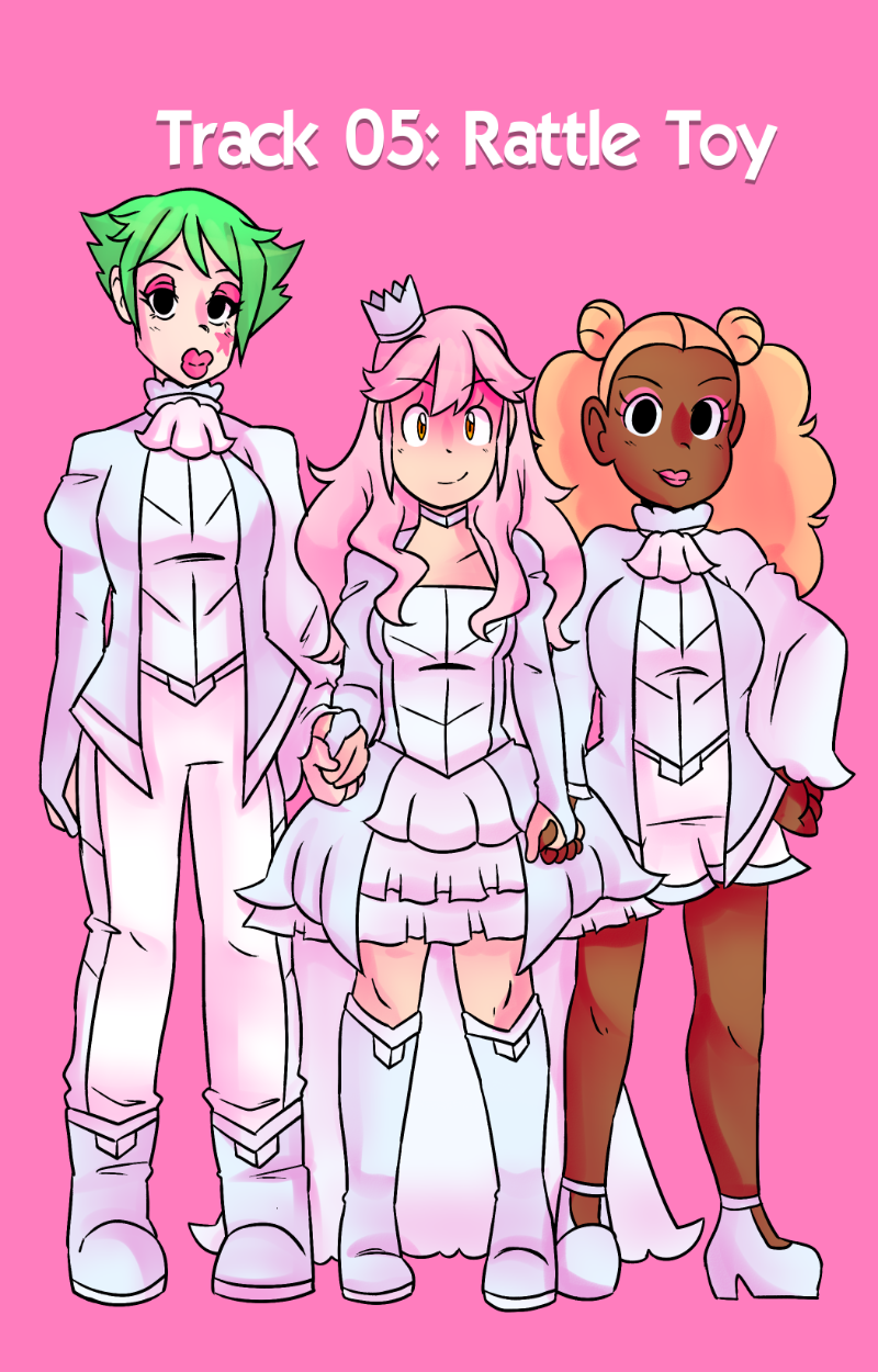 Rattle Toy was a short made passion project to prove i could do it, The comic was written and made in less then a year at a time that was one of the hardest in my life, a family member had passed and that had indirectly caused me to be temporarily homeless i should have put the project aside but i latched onto it and while i have MANY misgivings with how it turned out. I am overall still proud of it despite those flaws. The comic “bombed” essentially and while the goal for this project was never for it to be popular or successful, i was a tad discouraged to the point of barely wanting to post it (its why the long hiatuses in its posting despite the whole thing being finished in 2018) I decided it’s finally time. Thank you for anyone who reads this silly little niche passion project full of weird choices and silly writting. These girls were my children and i learned a lot from bringing them into the world.