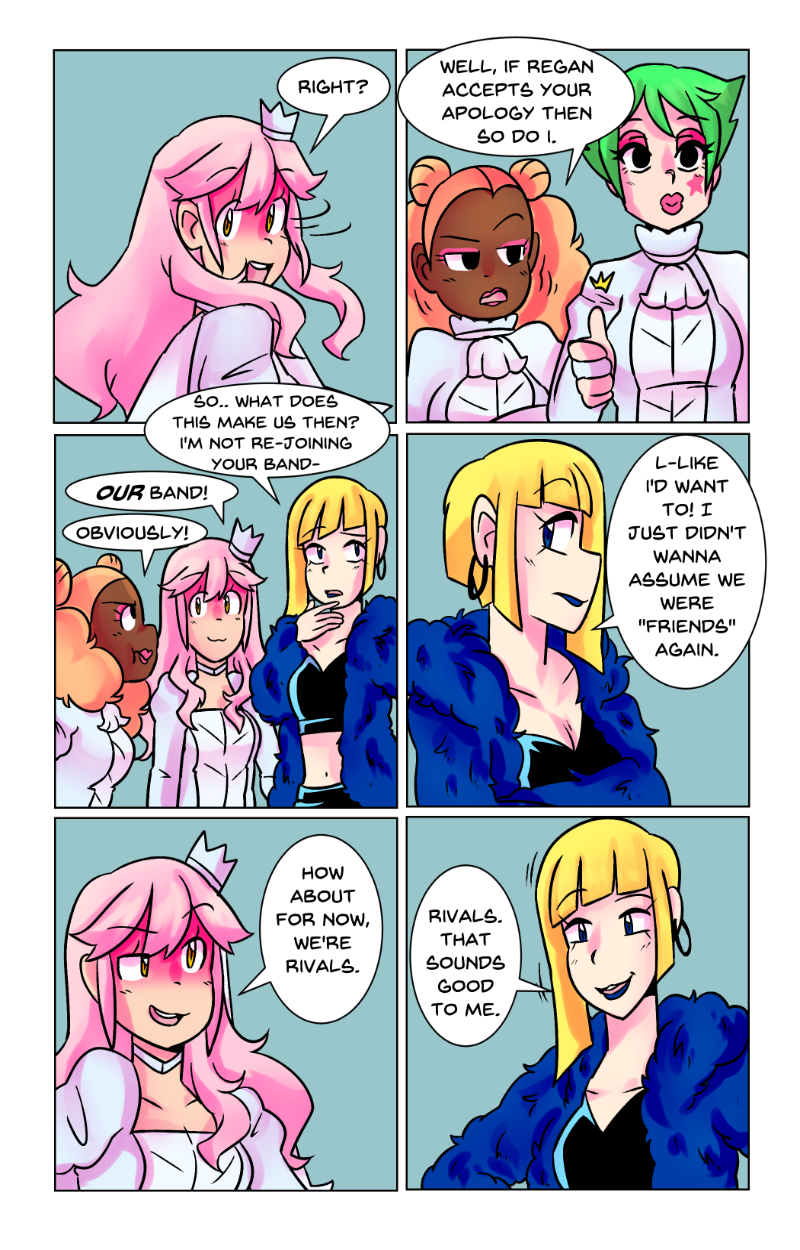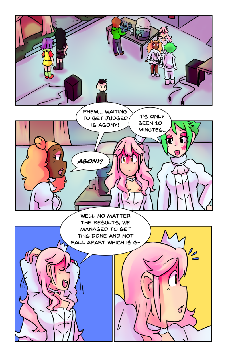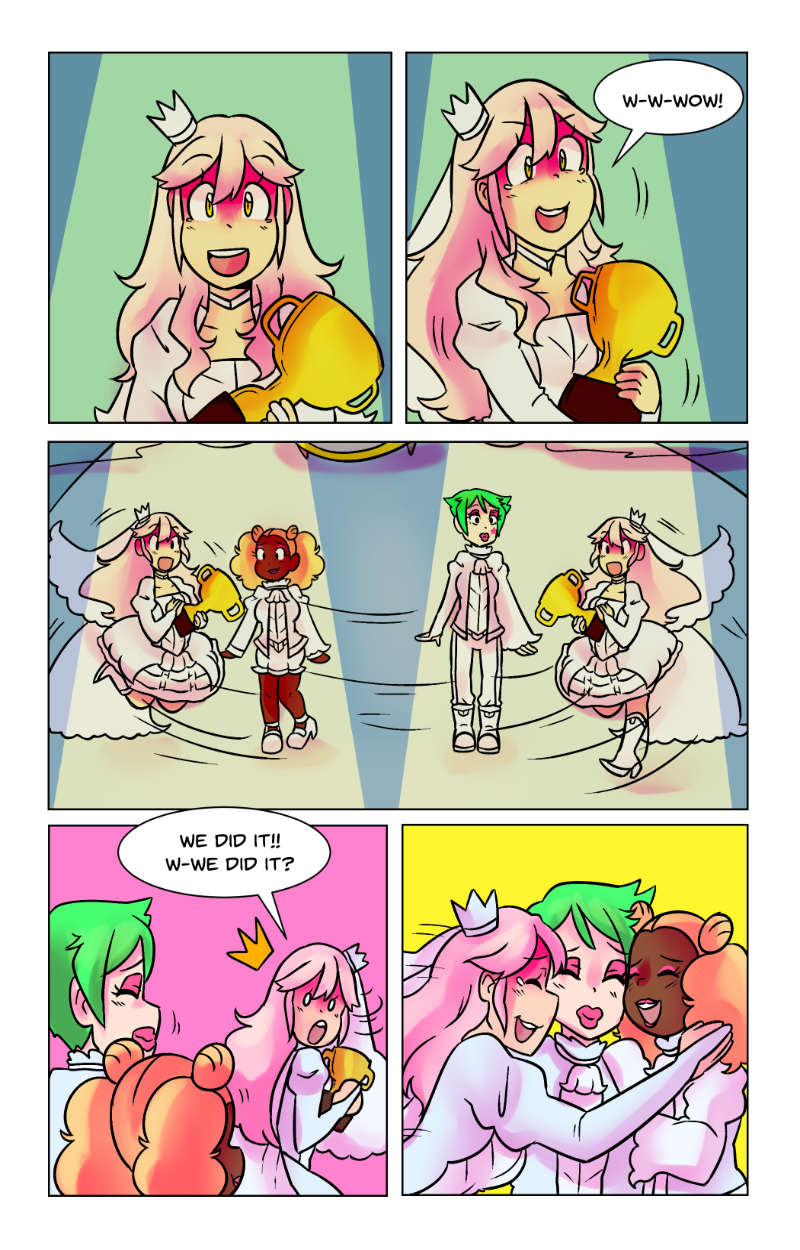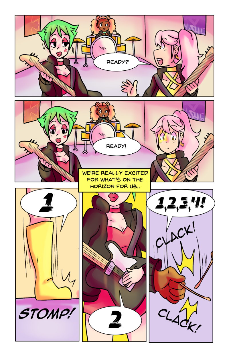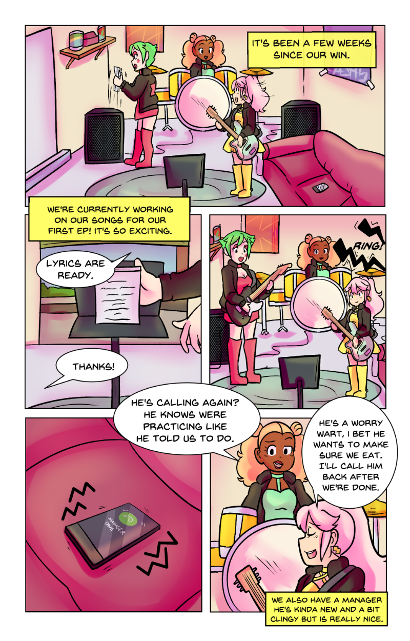 Rattle Toy was a short made passion project to prove i could do it, The comic was written and made in less then a year at a time that was one of the hardest in my life, a family member had passed and that had indirectly caused me to be temporarily homeless i should have put the project aside but i latched onto it and while i have MANY misgivings with how it turned out. I am overall still proud of it despite those flaws. The comic “bombed” essentially and while the goal for this project was never for it to be popular or successful, i was a tad discouraged to the point of barely wanting to post it (its why the long hiatuses in its posting despite the whole thing being finished in 2018) I decided it’s finally time. Thank you for anyone who reads this silly little niche passion project full of weird choices and silly writting. These girls were my children and i learned a lot from bringing them into the world.