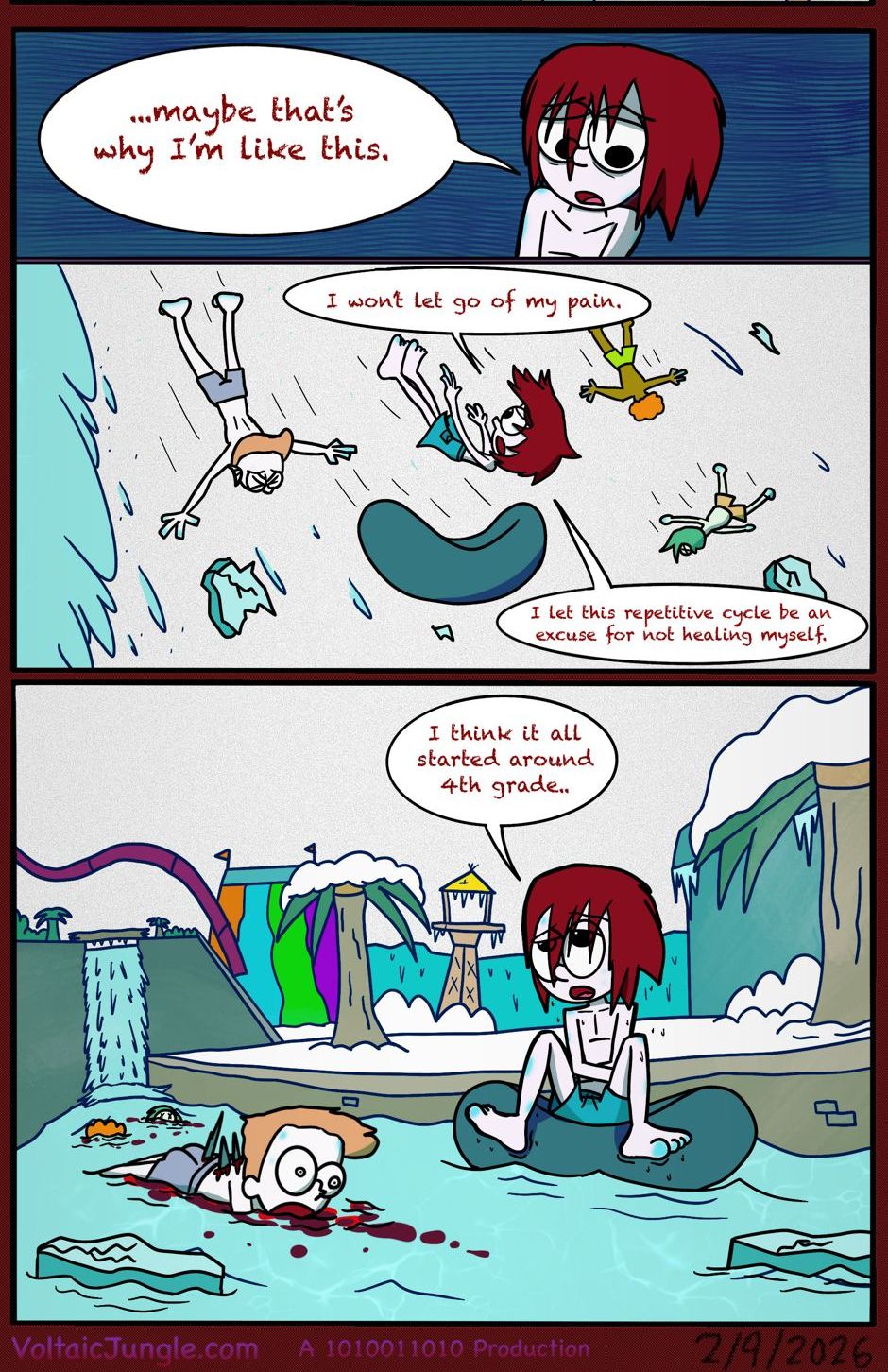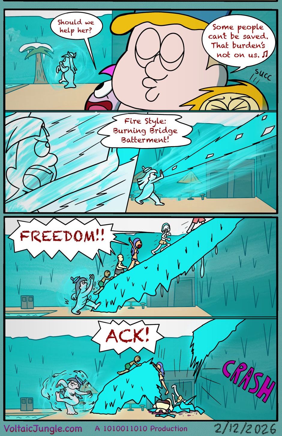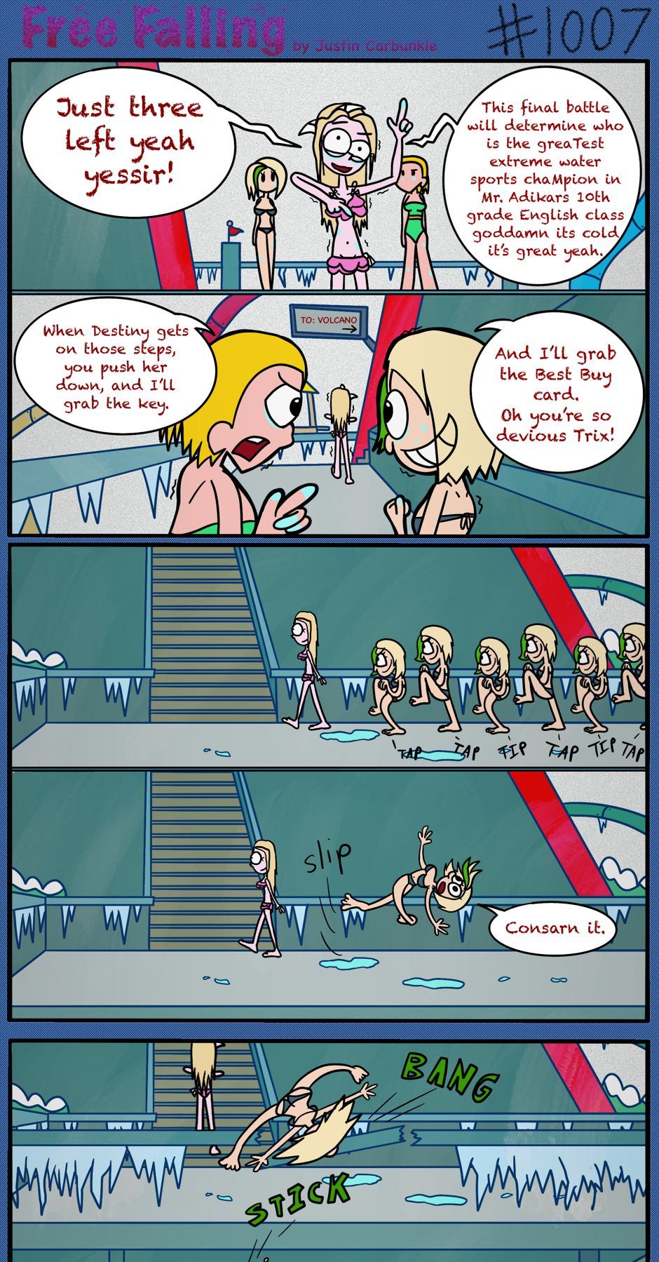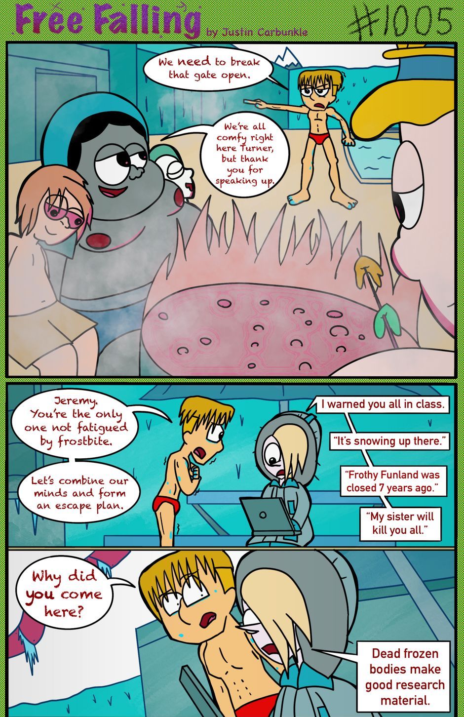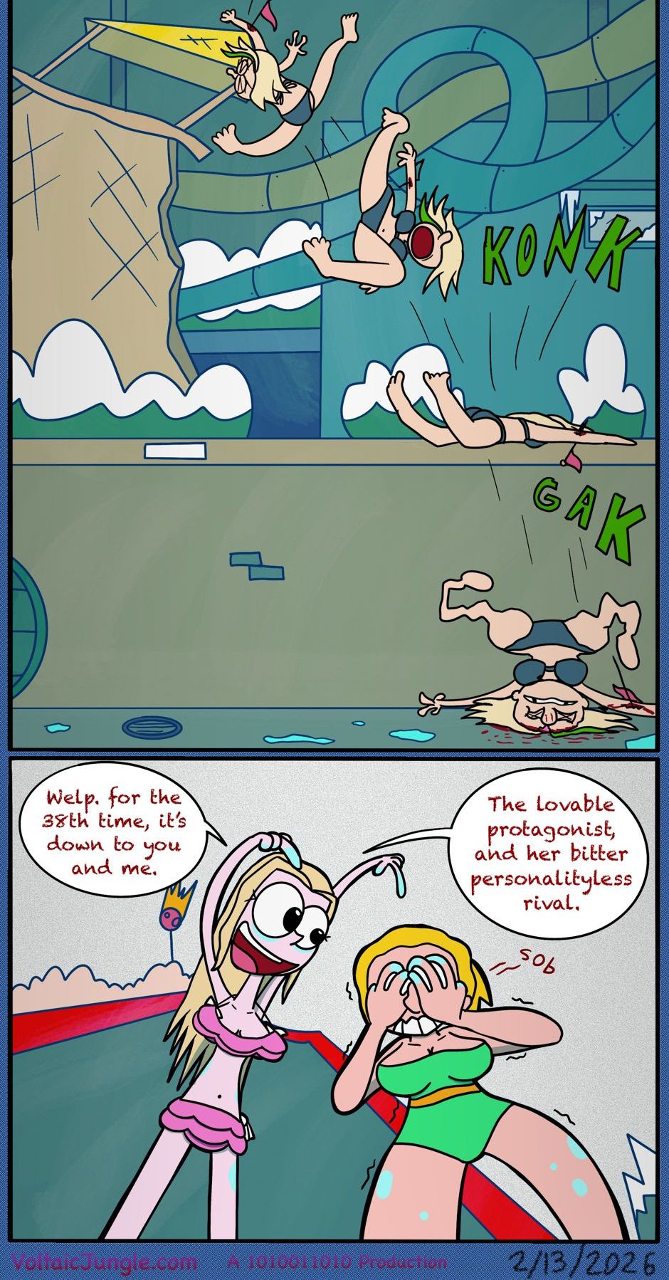 The hit early 2000’s cartoon continues churning out new adventures! Rebooted back to their iconic teenage selves, our six protagonists must cope with their renewed, seemingly endless existences. Watch these poor souls continue to entertain forever and ever and ever and ever and ever... Also available at www.voltaicjungle.com/free_falling