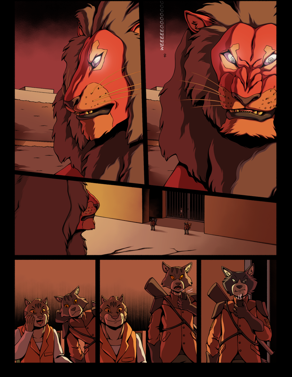 In The Lion's Den takes place in an alternate Earth where anthropomorphic animals called “critters”, coexist with the primitive “Giants”. The Critters live in a land of their own, forming social groups and often gangs due to conflicts between one kin to another. Many of the Critters also venture out into The Land of the Giants, reasons for this ranging from opportunism, to feeling isolated from their own kind, or simply out of curiosity. Subsequently, many end up forming special bonds with The Giants.