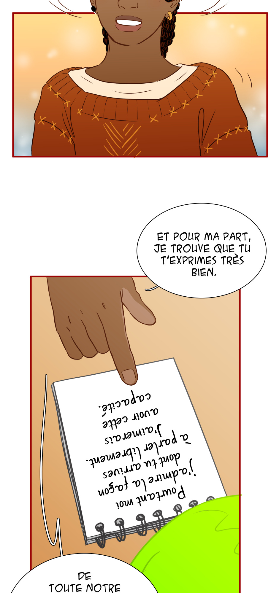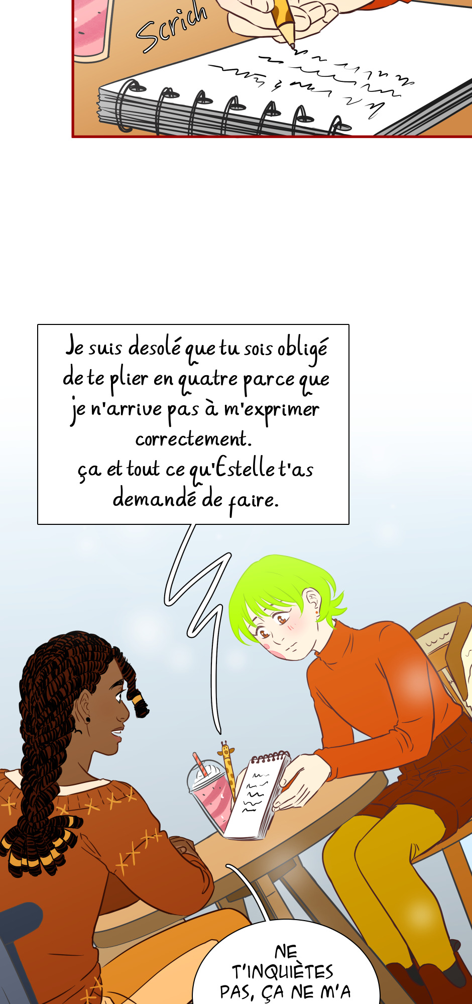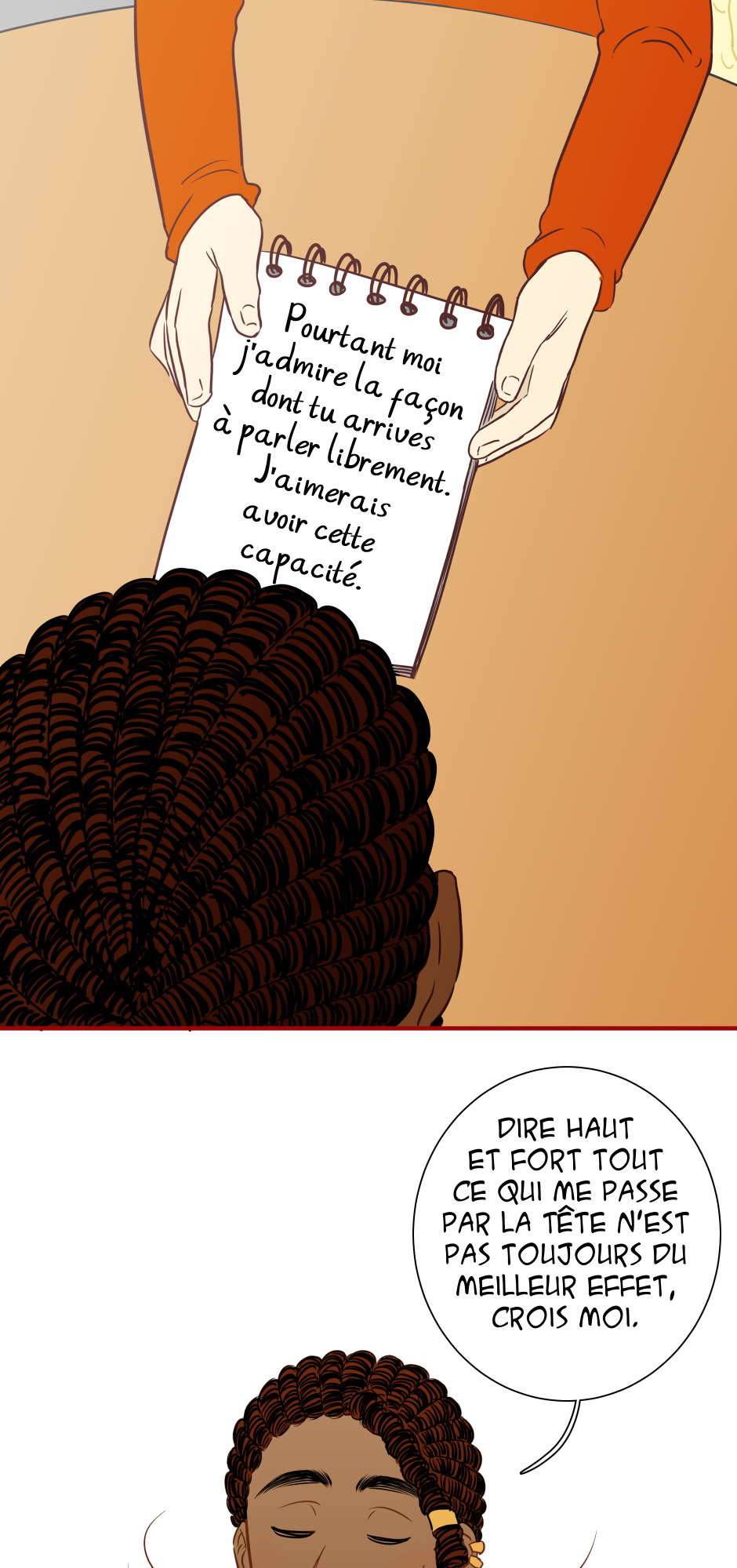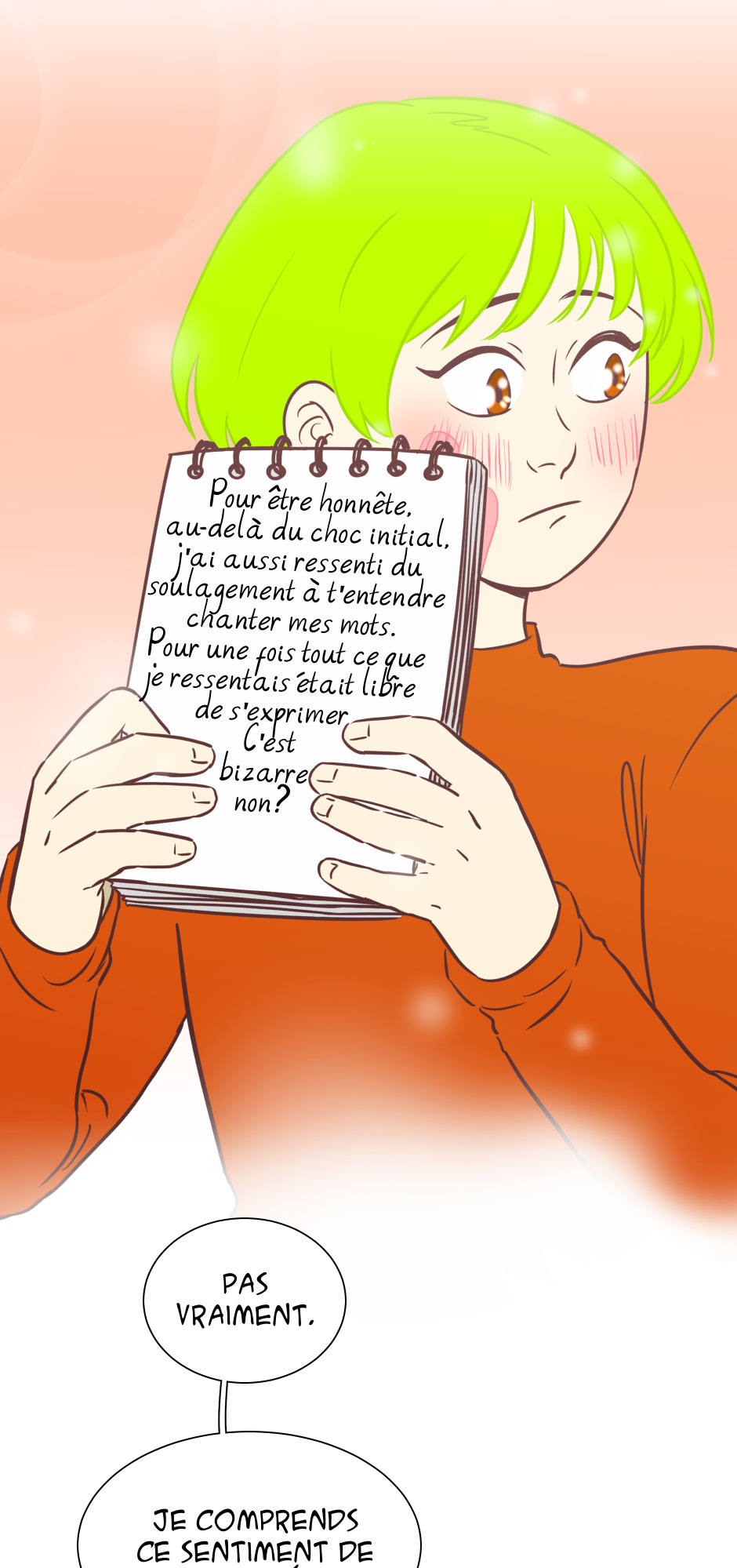 "Devon est timide au point de ne même pas pouvoir parler à des étrangers, consignant ses mots et pensées à l'abri dans son précieux carnet. Mais que se passerait-il le jour où iel le perdrait? Pire, que se passerait-il si quelqu'un venait à lire et exposer ses sentiments les plus intimes?"