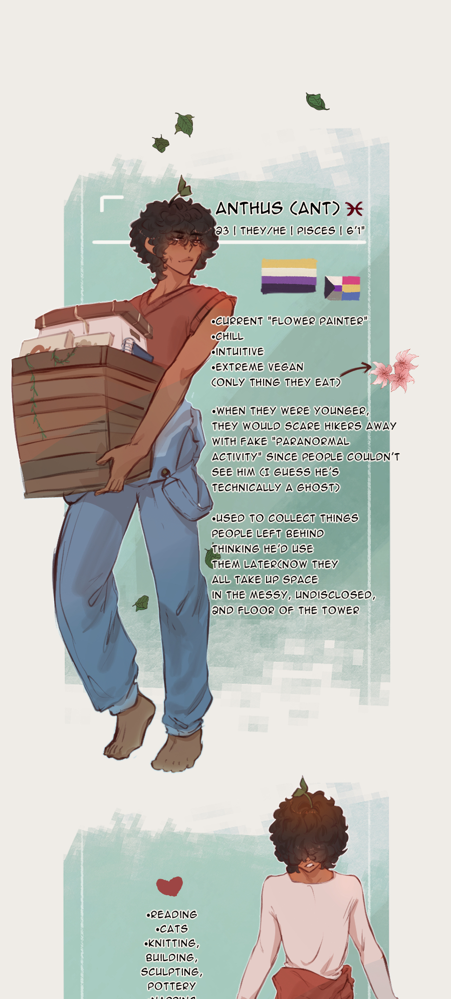 There is a legend that somewhere deep in a forest, a person lives in an old tower where painting is their only passion in life because painting is their only purpose in life. They were cursed with the task to grow flowers anywhere in the world simply by painting them and if they took one step out of the forest in which they live, they would disintegrate. So they stay day and night trapped in the forest, painting and painting, only hoping one day that someone will come to break the curse.