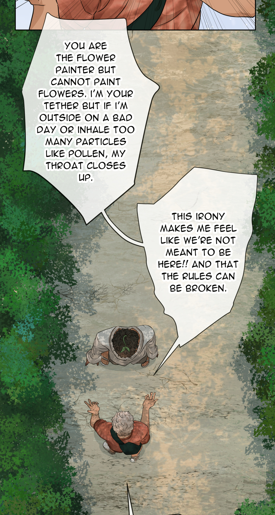There is a legend that somewhere deep in a forest, a person lives in an old tower where painting is their only passion in life because painting is their only purpose in life. They were cursed with the task to grow flowers anywhere in the world simply by painting them and if they took one step out of the forest in which they live, they would disintegrate. So they stay day and night trapped in the forest, painting and painting, only hoping one day that someone will come to break the curse.