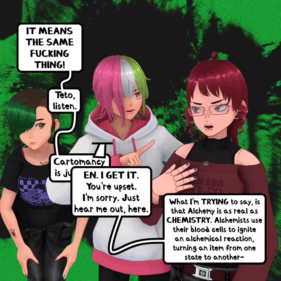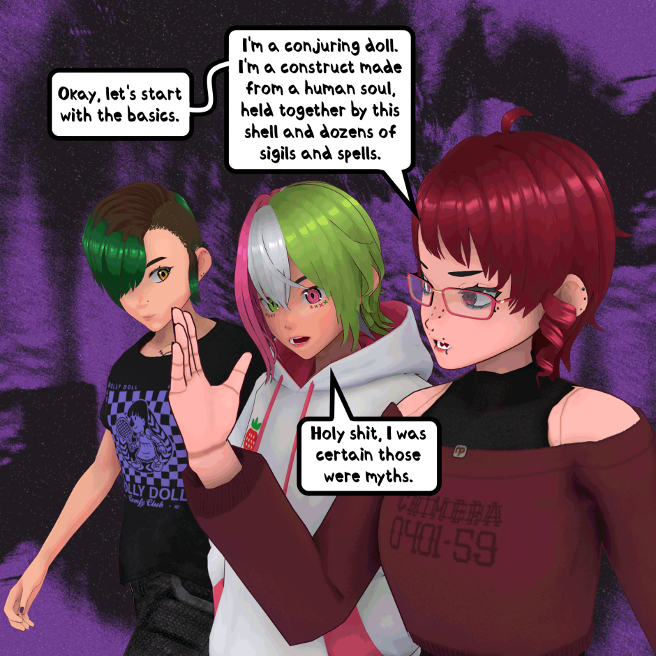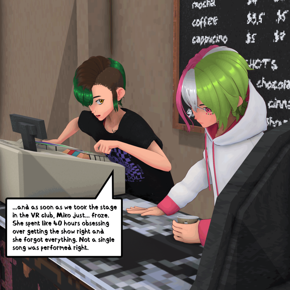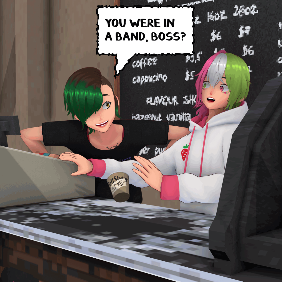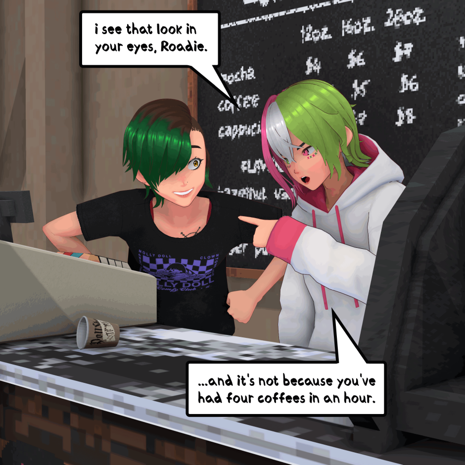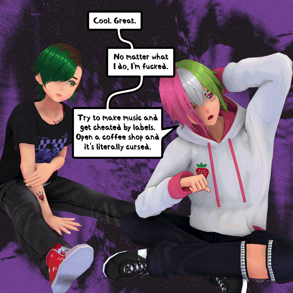 When a doll, a coffee shop owner and a listless punk get put in one space, things are bound to happen. DOLLSHAPE is about Roadie and En, two long-time friends who collide with a doll made of pure alchemy, named Kasane Teto. Together, they try to unlock the secrets of the world around them while trying to write some music for their band in the downtime. Created by STRYXNINE PULSATRIX.