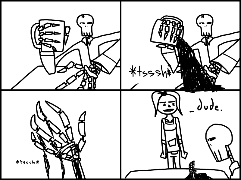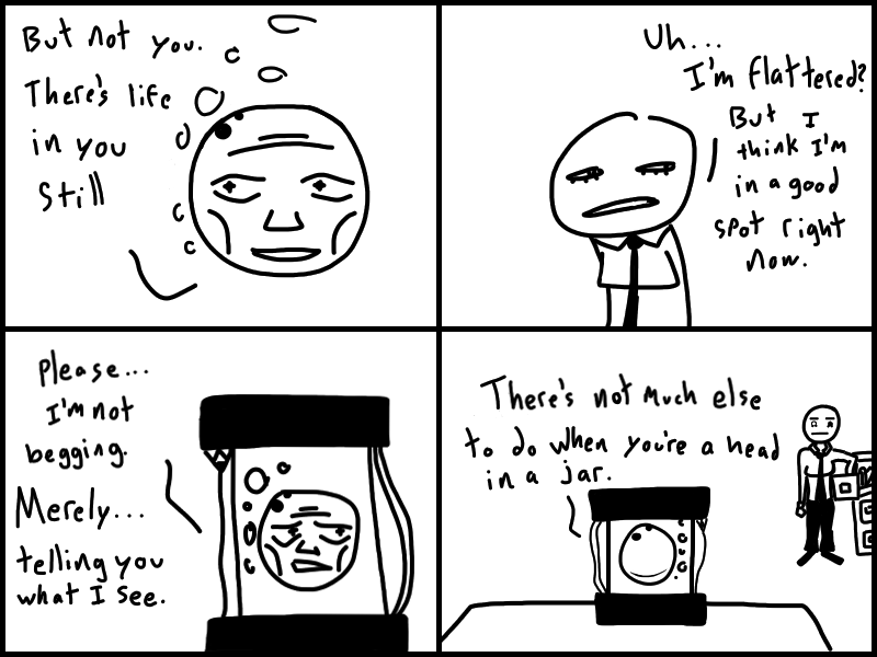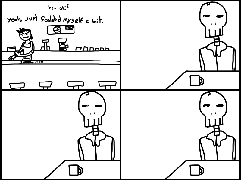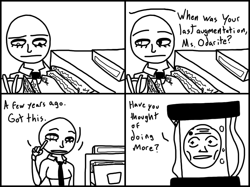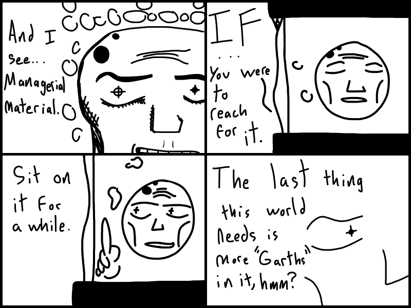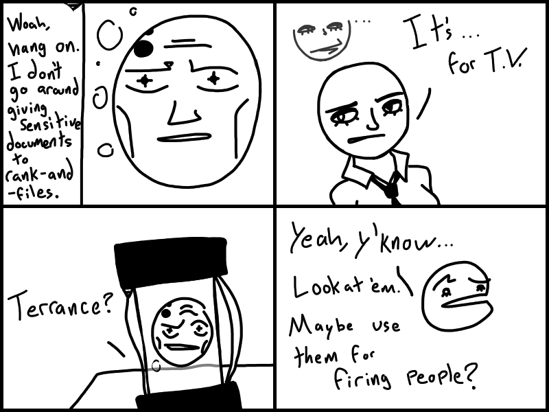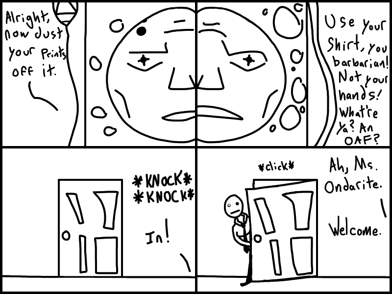 Doris goes to Jharmann for some EVIL files and has an EVIL TALK with an EVIL MAN. Skeleton's gotta lotta stuff to think about. Think about what? READ IT to find out!