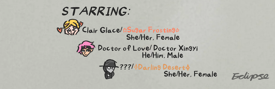 Clair Glace (she/her, female) makes some new discoveries of her relationship with Darling Desert (she/her, female).