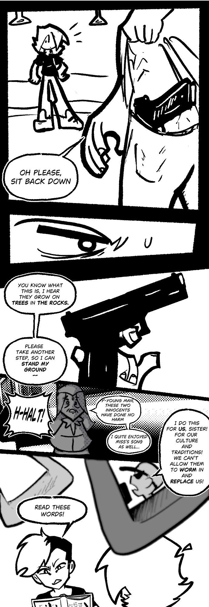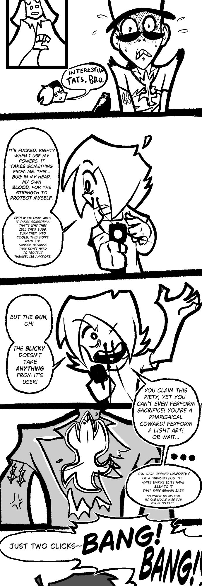 Why does it feel like a year since the last page...maybe because a lifetime has happened since them. This guy just learned hes gonna be a daddy in october! Pretty wild stuff. Hopefully this story can be something that contributes to them having a more artful and empathetic world. We'll see.