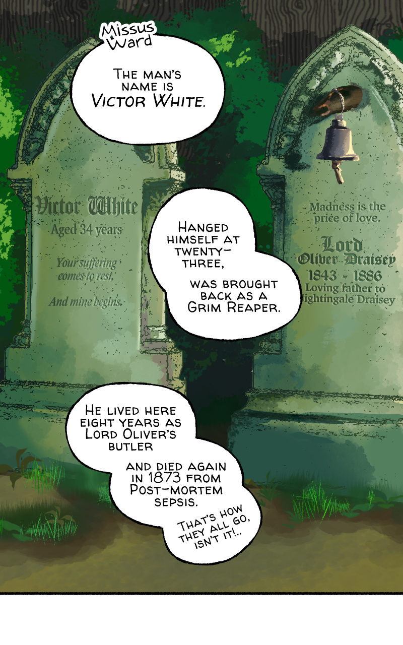 Losing his grip on reality, Bellamy is drawn to the quiet presence of Saint Madison—the Grim Reaper living across the corridor—reminding him that no matter what happens at Draisey Manor, there’s no place like home.