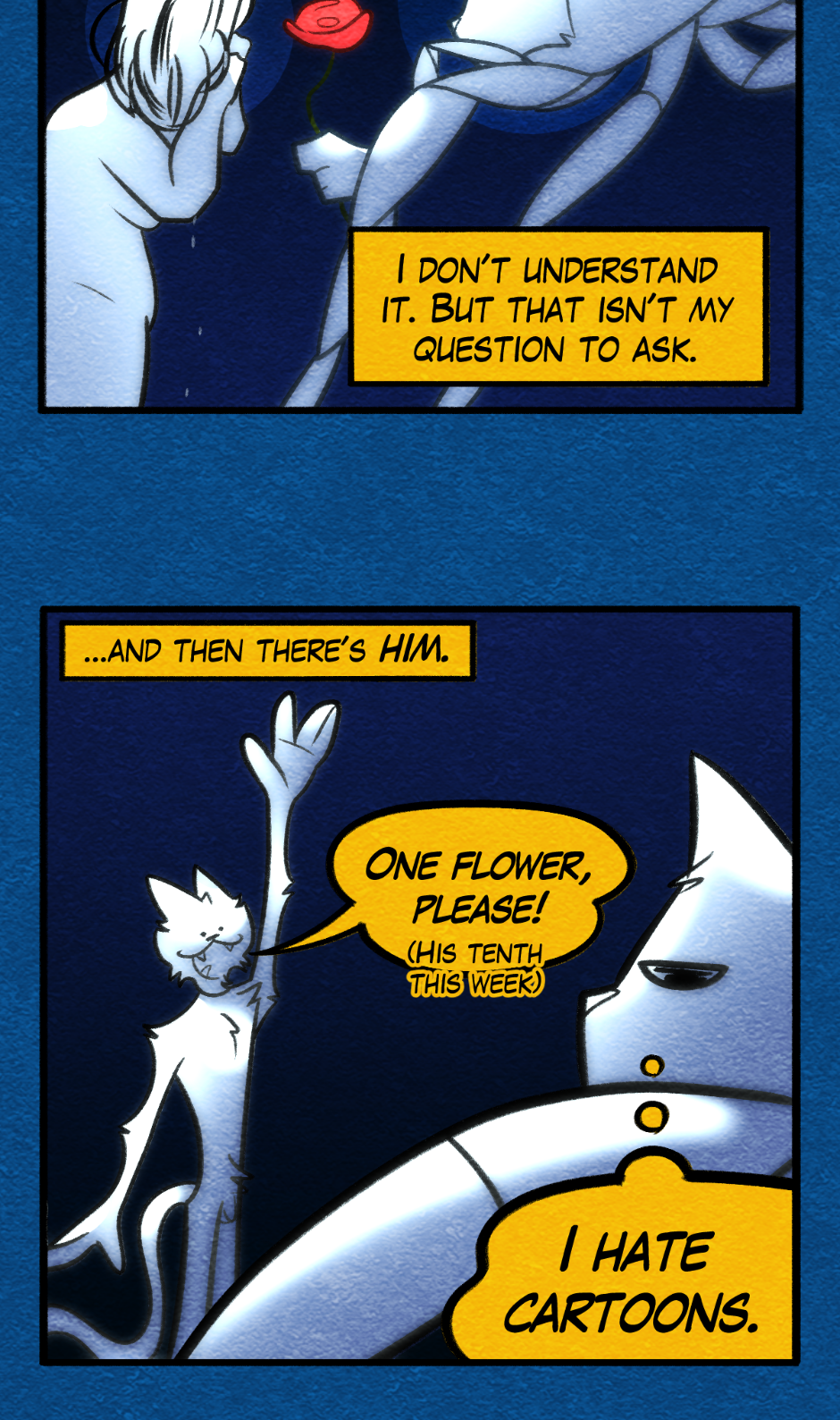 A collection of strips about the every-day life of most-wanted criminal TERRATOR... a.k.a [Klaus Wunderlich]! While he may be a dangerous, chaotic troublemaker at night, during the day he's... well, he's not much better, actually. Updates come out whenever I feel like making a new one.