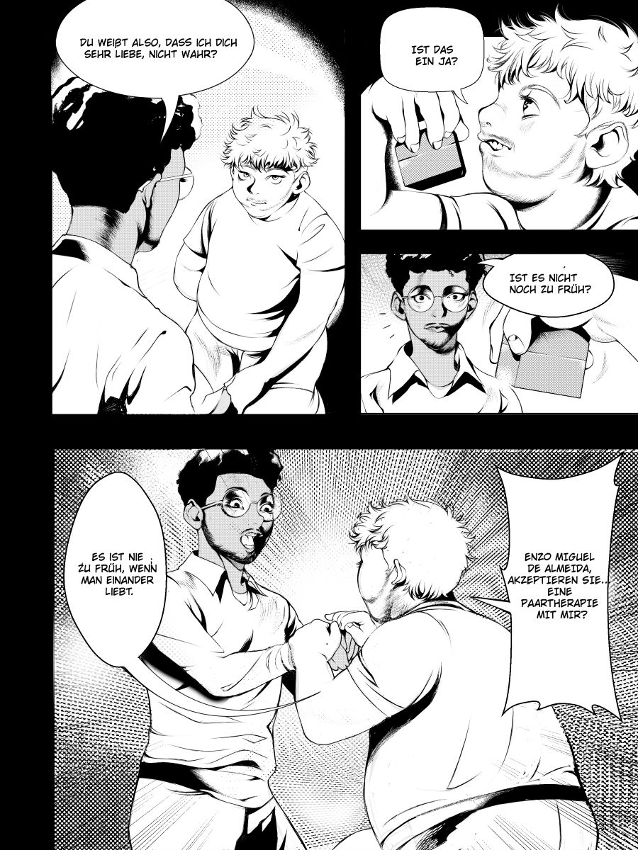 Gabriel has always taken university life lightly – occasional flirtations, parties, and an innate ability to turn any situation to his advantage. Enzo, on the other hand, is more reserved, balancing his studies with his mother's expectations and the fear of never realizing his dream of becoming a comic book artist. When their paths cross, the interest is immediate, but turning that into a relationship is another story.