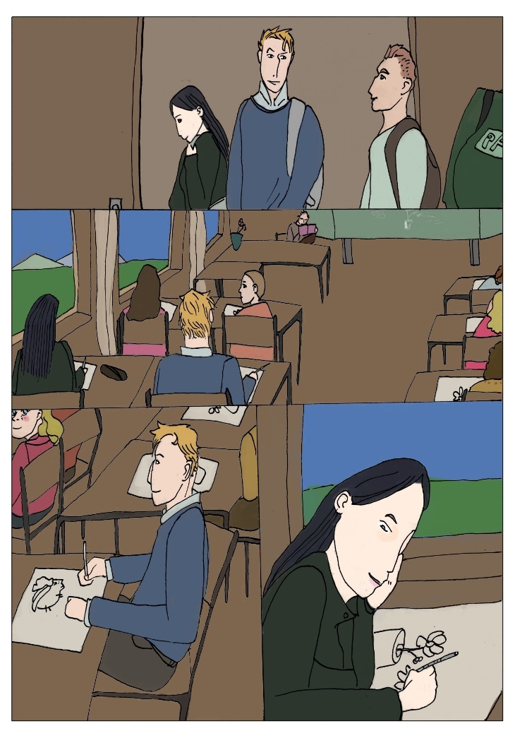 what´s going on here? Have a closer look on Raphaels drawing. Reminds you of anyone? Maybe the girl he is so vividly smiling to? ;D