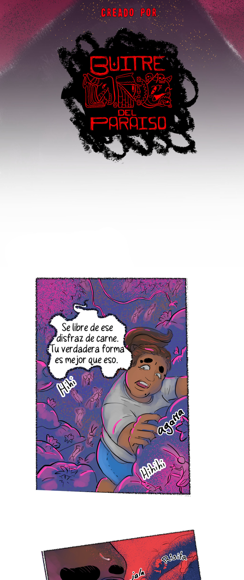 La Guarida del chismoso es una colección de comics de horror sobre tres chicas que sobreviven los pequeños infiernos de la vida cotidiana y lidian con los dioses locales corrompidos en el proceso.