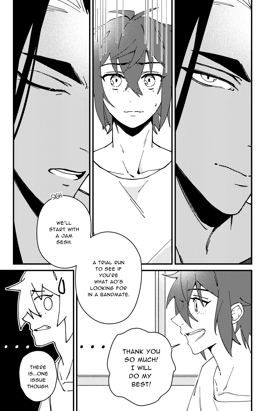Ao, a hopeless romantic musician, tries —and fails— to deny his feelings towards his bandmate and best friend, Kuro, who in return, is just as infatuated with Ao.