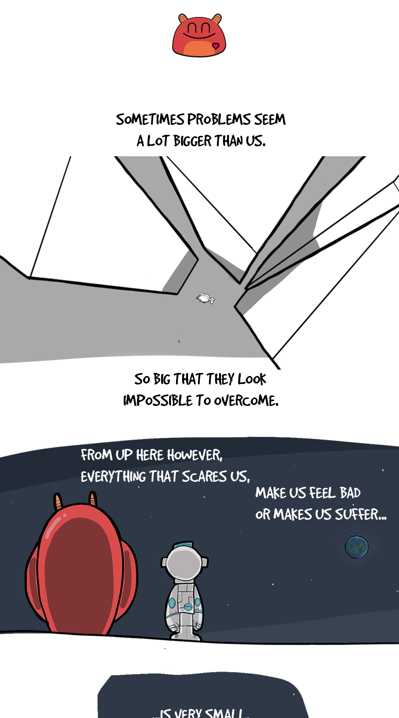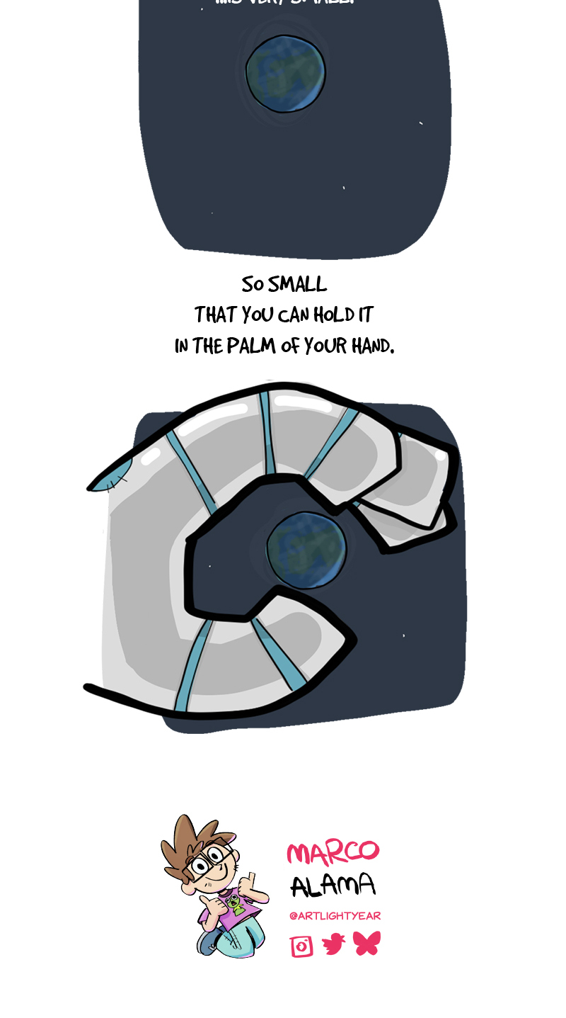 I've always loved the idea that if you watch us from far, far above, we're just a tiny marble in a vast space. It puts things in perspective. But then again, I've always loved space things.