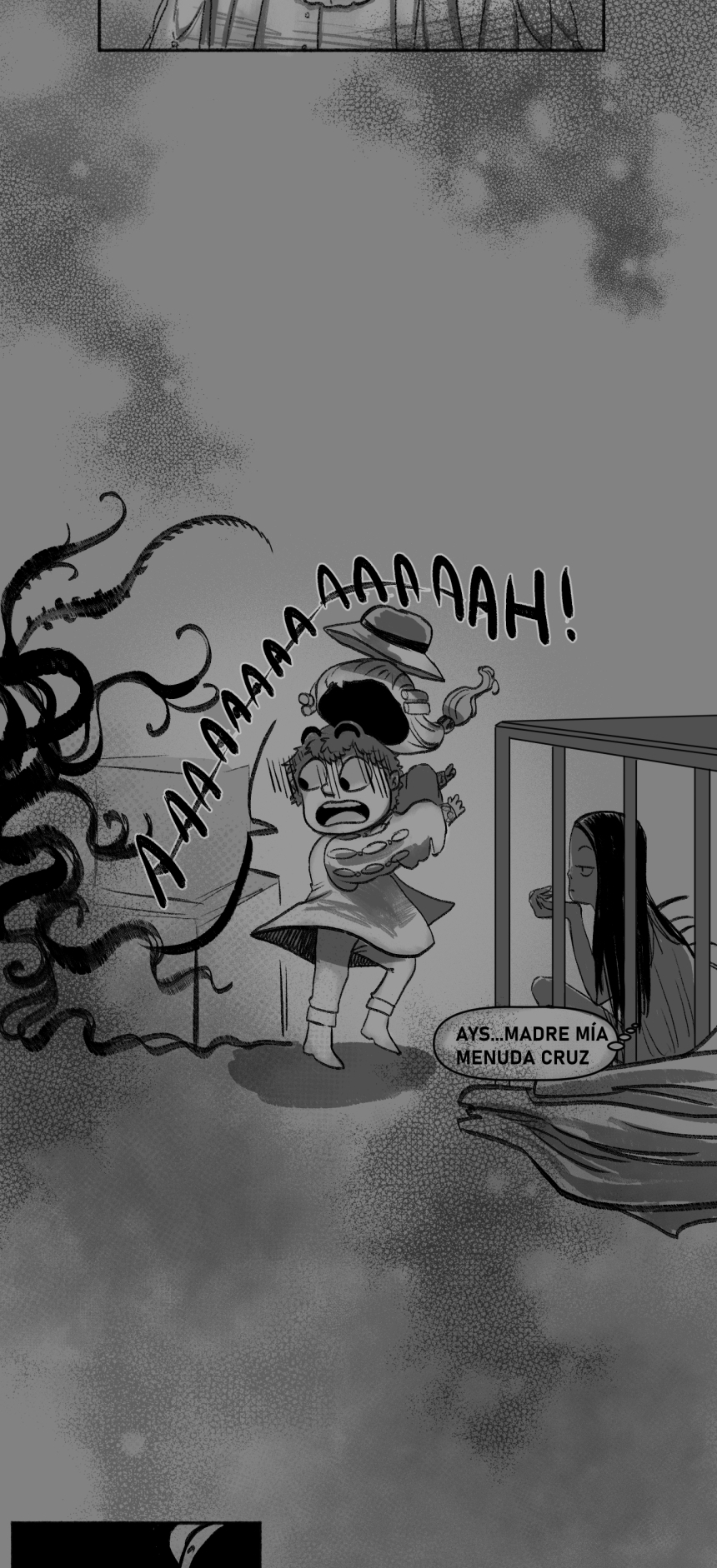 ADORO la viñeta de la peluca voladora, con los tentáculos cuchulianos por un lado y la cautiva por el otro lado pensando que qué cruz XDDD