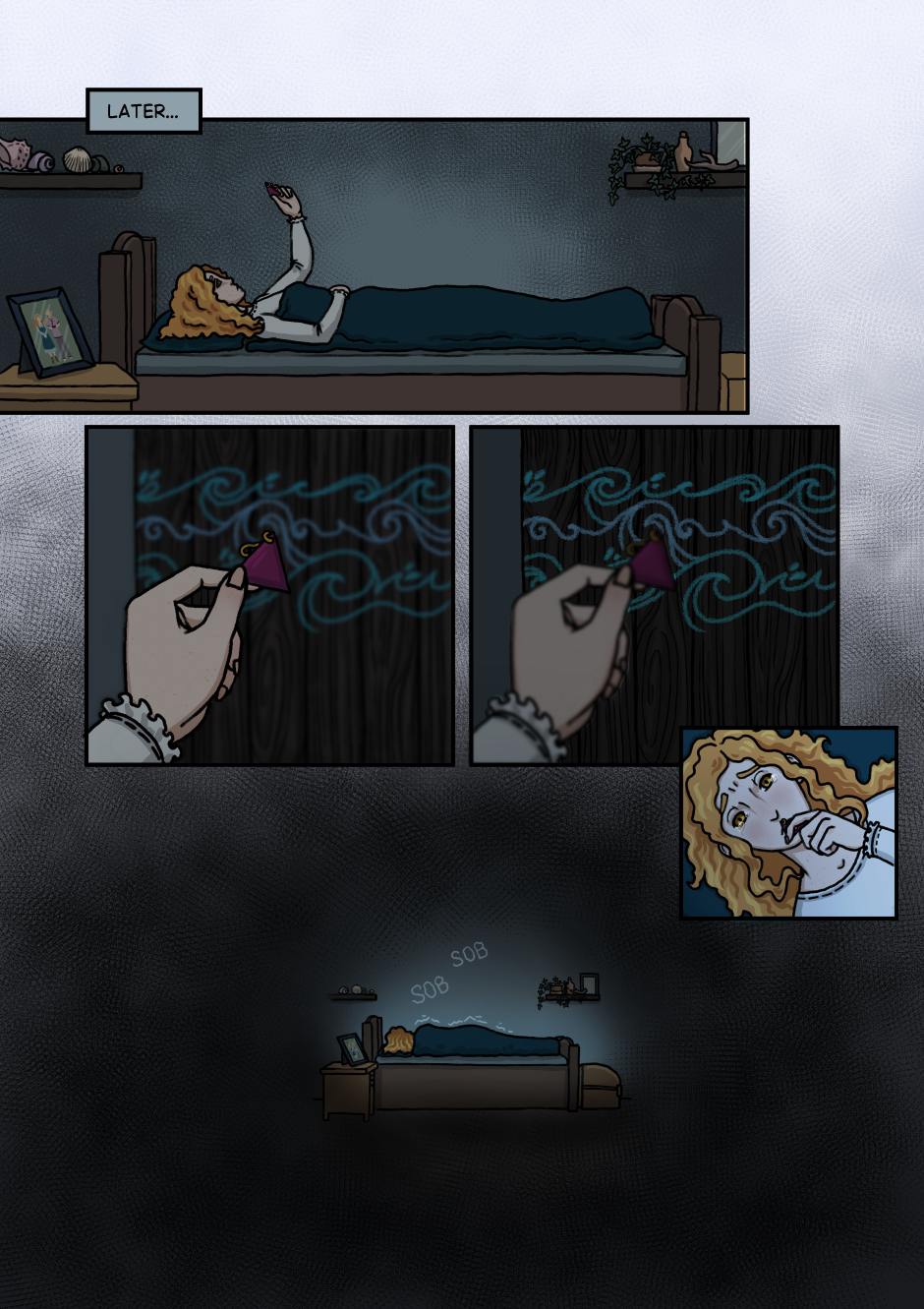 Hmmm, my prediction is that the earring and the mysterious mask belong to the former tenant next door. I wonder if his (I think she said "he" in a previous chapter?) disappearance has anything to do with that stone circle full of eldritch horror...
