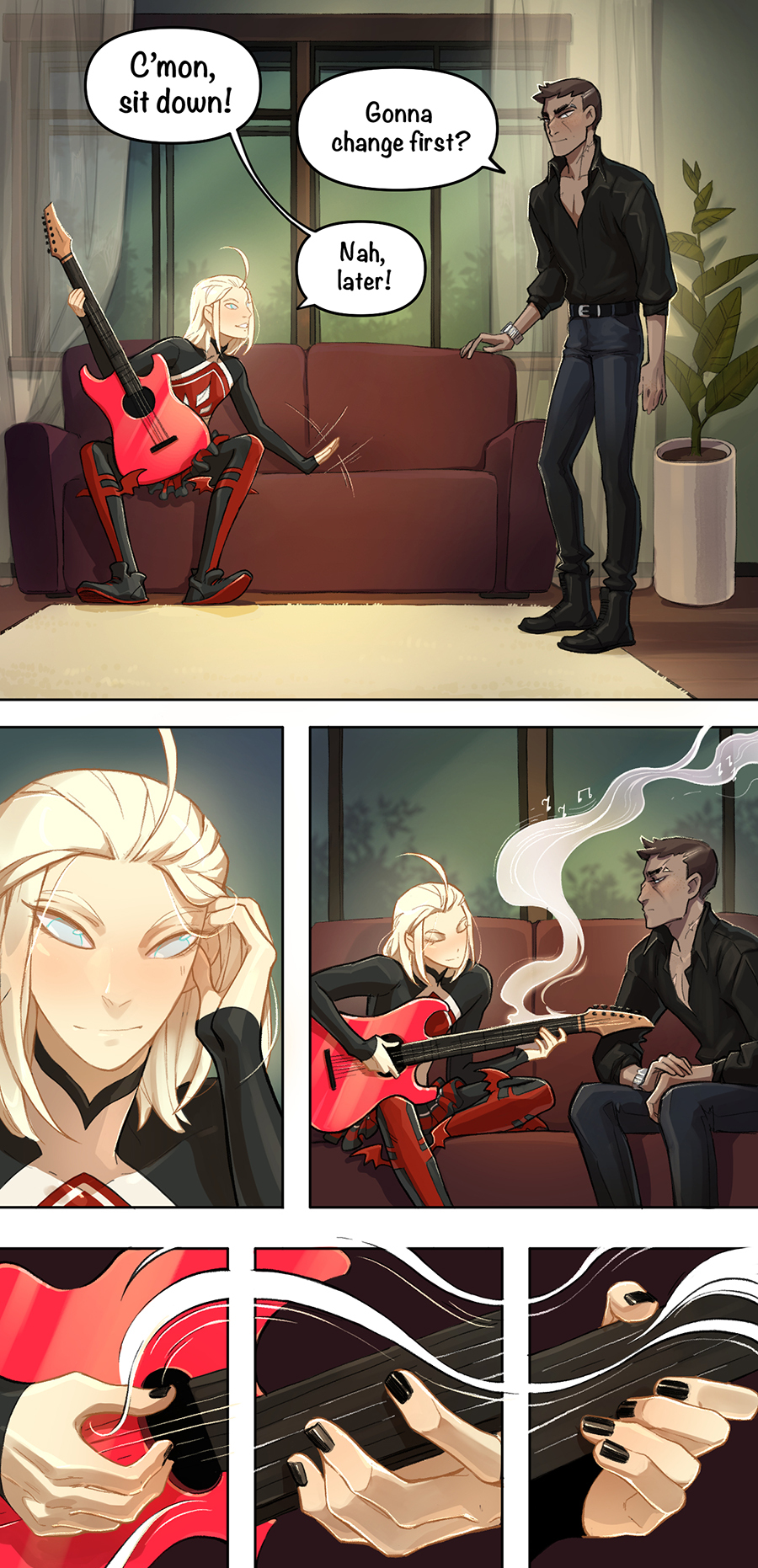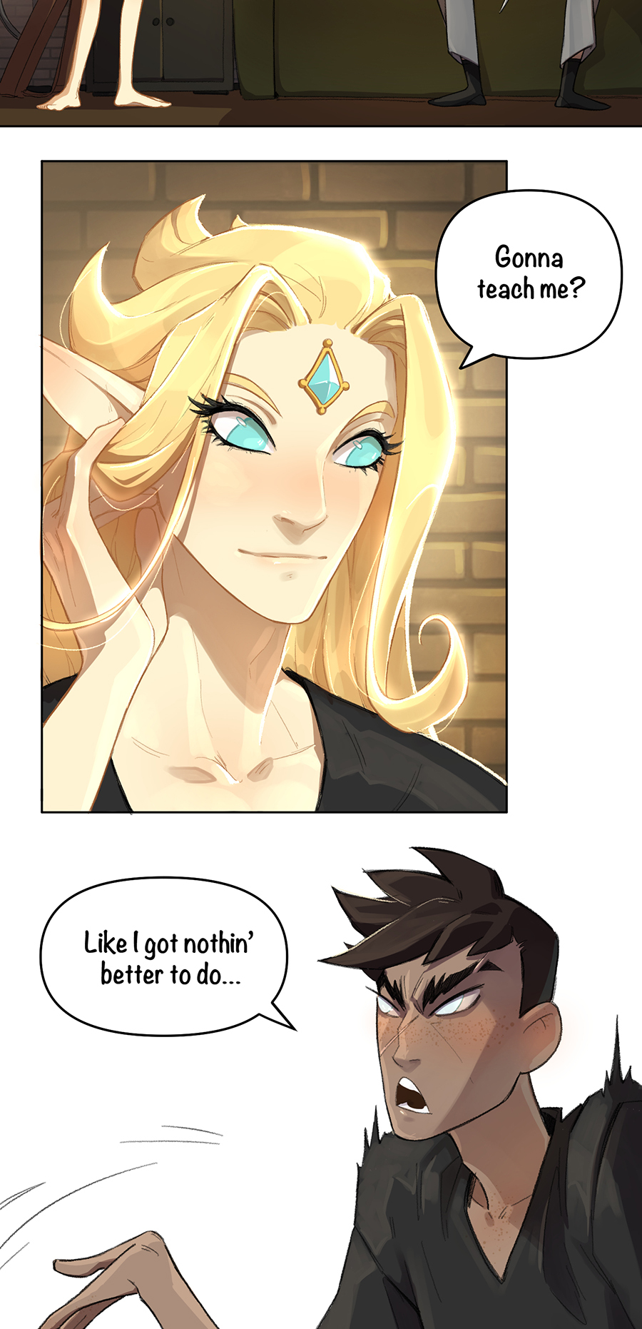 A story about an arranged dynastic engagement of an elf and a vampire, which has no plot and often does not make much sense, so be prepared for this sort of rubbish :) These short and long strips are full of queer and straight love, romance, unicorns and fairytale (lack of) logic in characters’ motivation and the story as a whole.