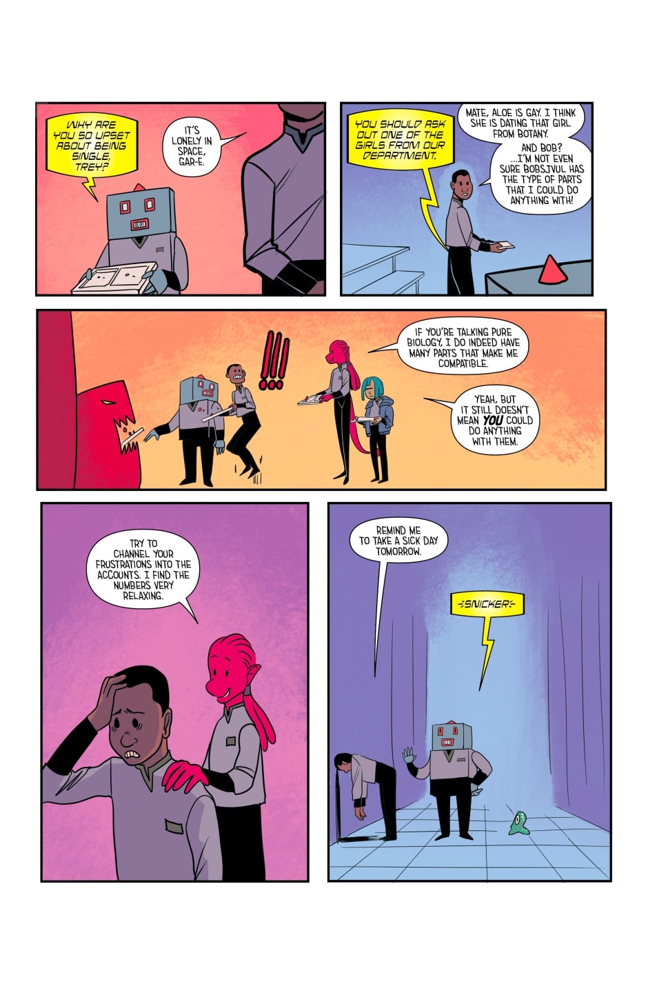 Launched on the 30th of March 2016, Ship Wrecked is the story of the Intergalactic Spaceship Bowie‘s Accounting Department. A new page is posted every Wednesday.