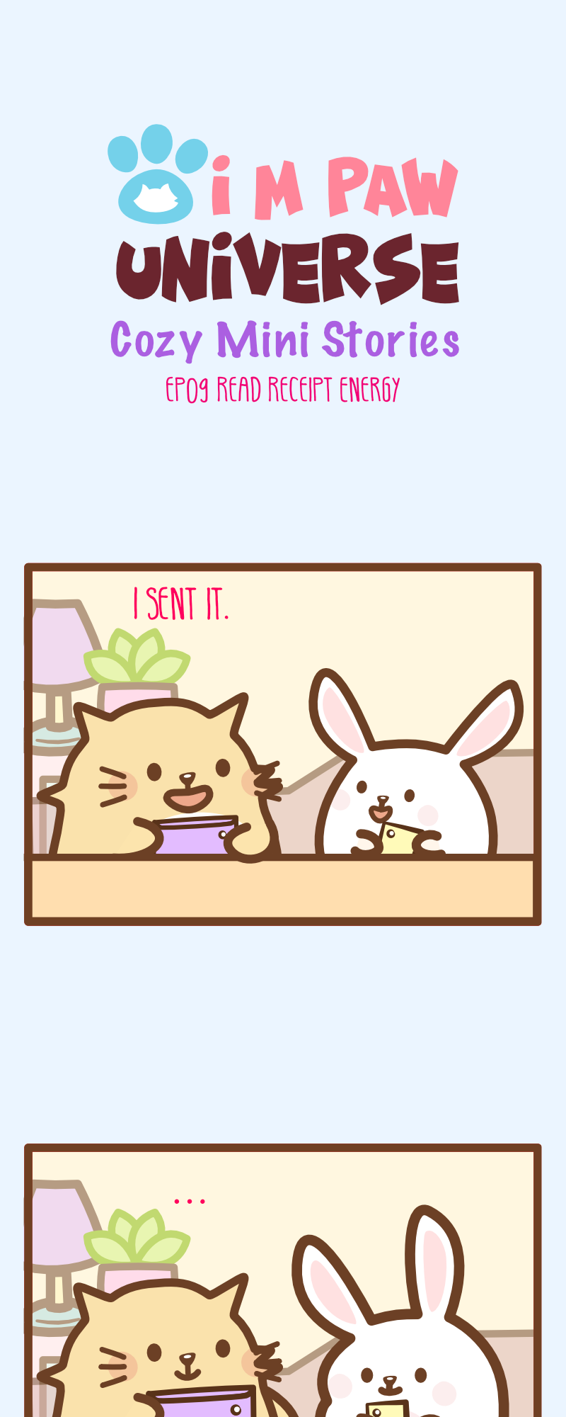 Sent it. Seen. Thinking… Why is six seconds emotionally illegal? (But also six seconds can feel like six business days.) EP09 is dedicated to overthinkers everywhere. Thank you for reading EP09 💛 If you’ve ever overthought a read receipt, this one’s yours. – I M PAW Universe