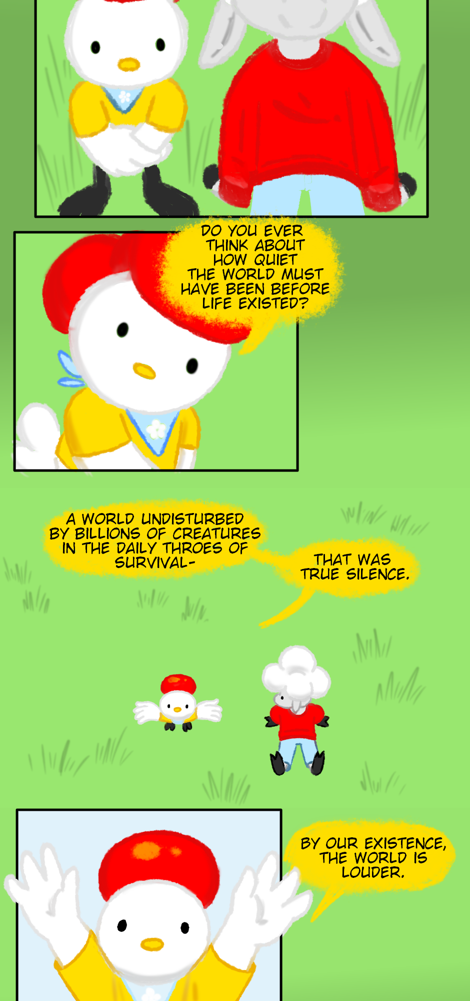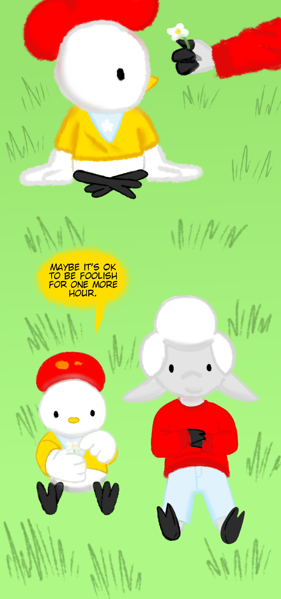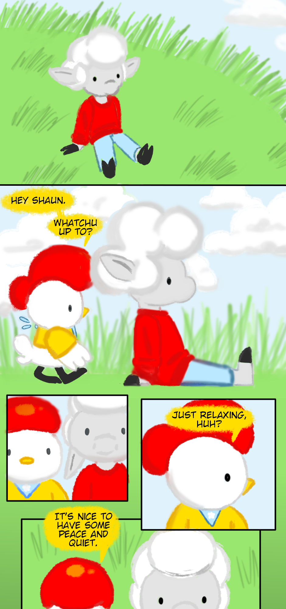 Just feeling like finishing a gentle comic today :) Shaun and Henrietta's relationship is really sweet; it's so fun to draw their interactions.