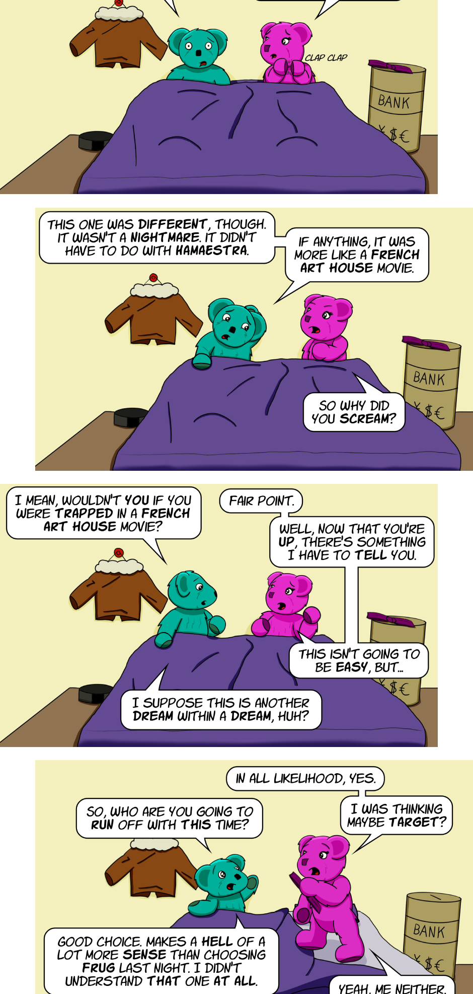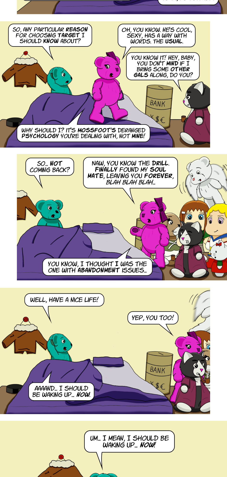 Fuzzy Knights follows the secret lives of toys, and what they do when we're not watching. Most of the time, it's playing games.