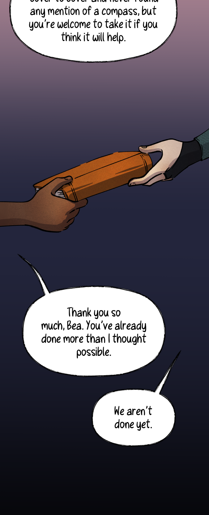 And thank you to all of those who have submitted characters for background cameos. I'm so excited to have them show up in future chapters - I'm working off of a buffer so it'll be a second before you see them, but they're coming <3 I'm planning to do as many as I can, so please keep sending them! They all look like they'll be fun as hell to draw which is a win-win-win :)