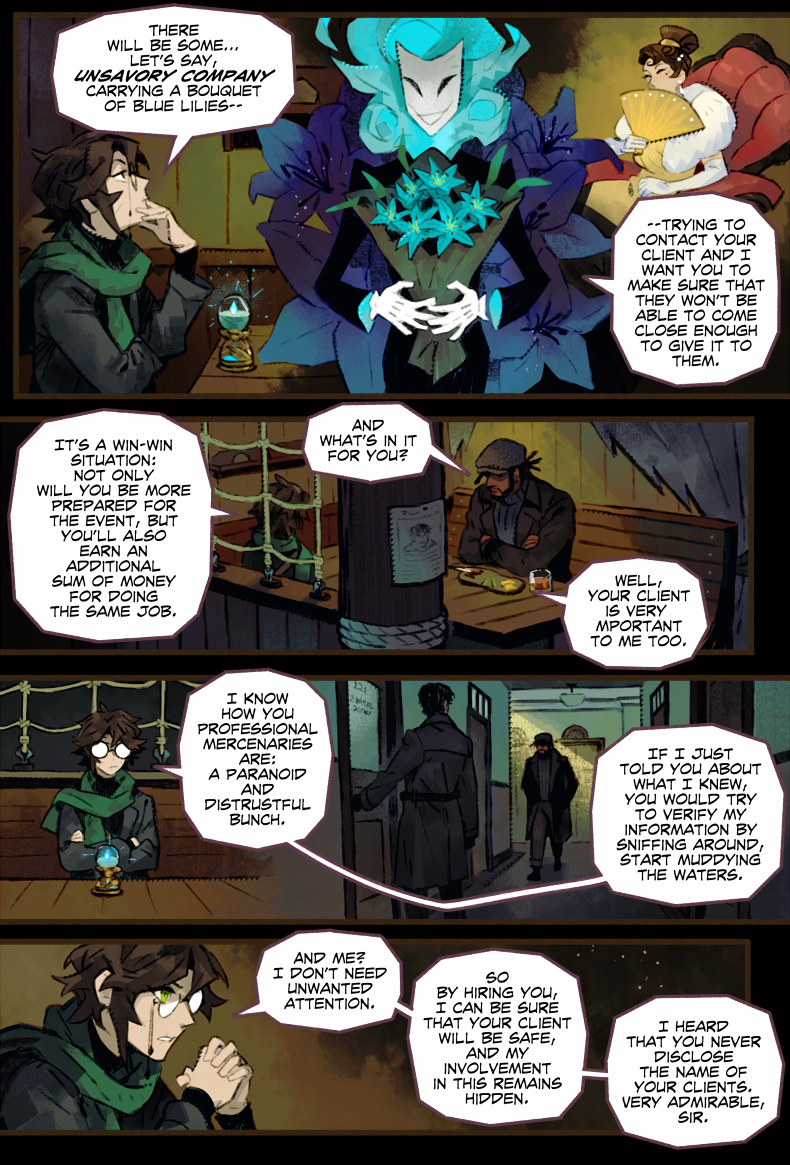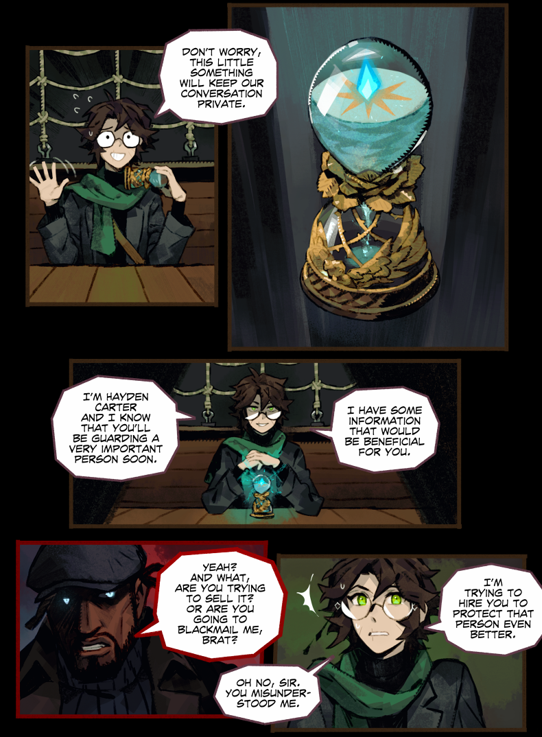 HAYDEN’S NOTES is a magic realism mystery with horror elements, set in the fictional country in the first half of the 20th century. The comic’s told in the non-chronological order revolving around Hayden Carter, immortal (by accident) gray mage, pursuer of knowledge and a witty nuisance for everyone around.